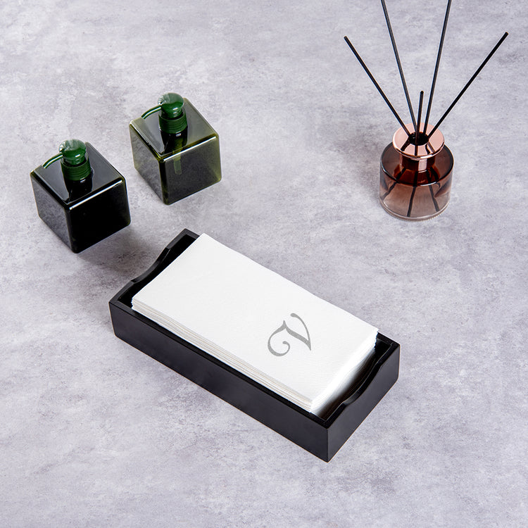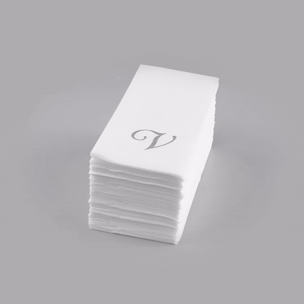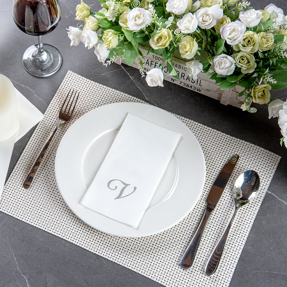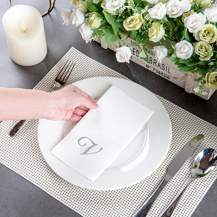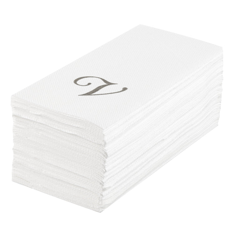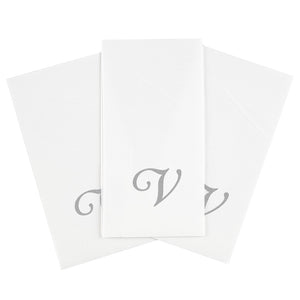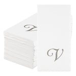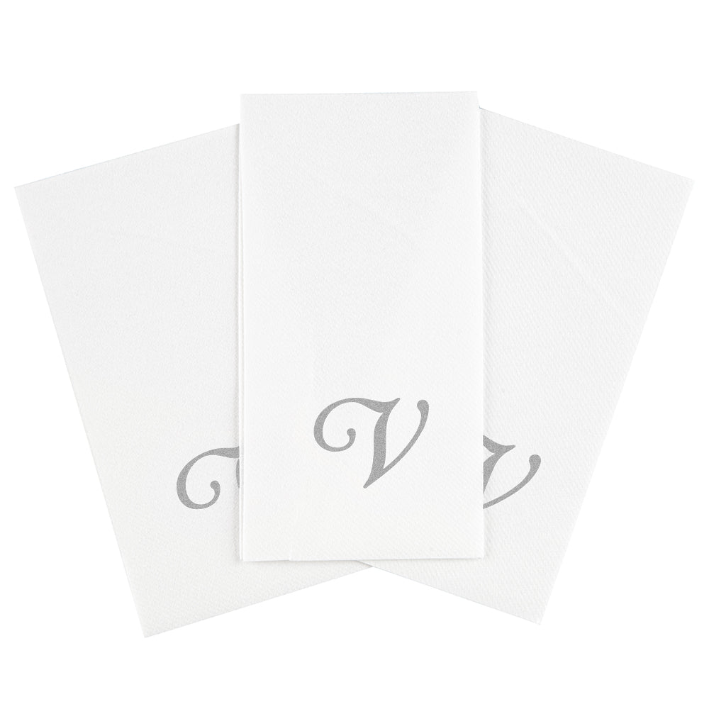 SILVER LETTER V PAPER LINEN-FEEL GUEST TOWEL/NAPKIN - CURSIVE FONT