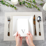SILVER LETTER V PAPER LINEN-FEEL GUEST TOWEL/NAPKIN - SANS SERIF FONT