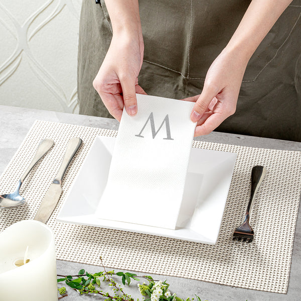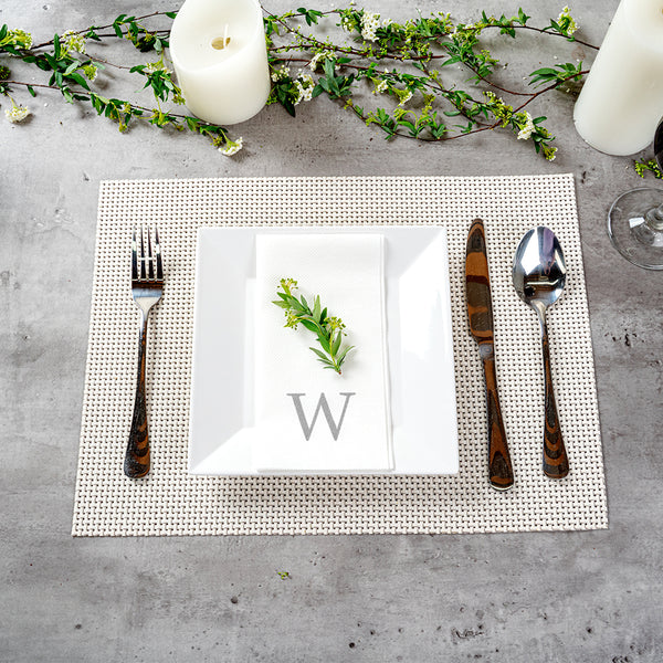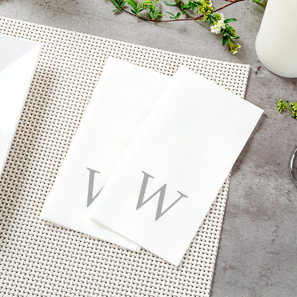 SILVER LETTER W PAPER LINEN-FEEL GUEST TOWEL/NAPKIN - SANS SERIF FONT