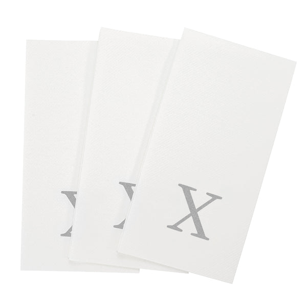 SILVER LETTER X PAPER LINEN-FEEL GUEST TOWEL/NAPKIN - SANS SERIF FONT