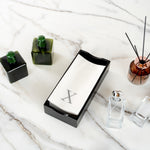 Elevate dining experiences with luxurious linen-feel napkins. Luxenap Rectangle Silver Letter X White Paper Linen-Feel Guest Towel / Napkins are crafted from premium airlaid paper, providing a soft, linen-like feel that enhances guest comfort and sophistication. The elegant silver letter 'X' design adds a touch of personalization and refinement, making these napkins ideal for upscale restaurant table settings. Their airlaid construction ensures exceptional absorbency, effectively tackling spills while maintaining a pristine dining environment. Measuring at 15.75 x 7.87 x 0.1 inches, these soft paper napkins have a compact folded size, optimizing storage and transport efficiency for busy foodservice operations. The durable material ensures high liquid absorption and maintains integrity even when wet, offering both functionality and style. Choose these premium paper napkins to add elegance and convenience to your foodservice operations. Sold in a 50 count box.