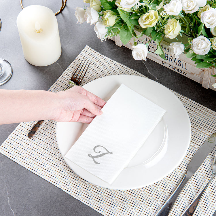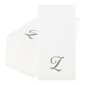 SILVER LETTER Z PAPER LINEN-FEEL GUEST TOWEL/NAPKIN - CURSIVE FONT