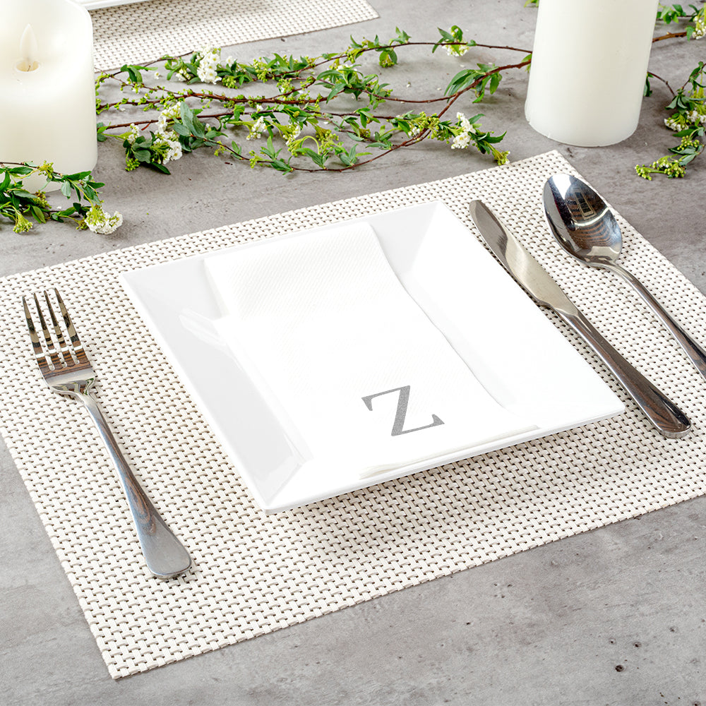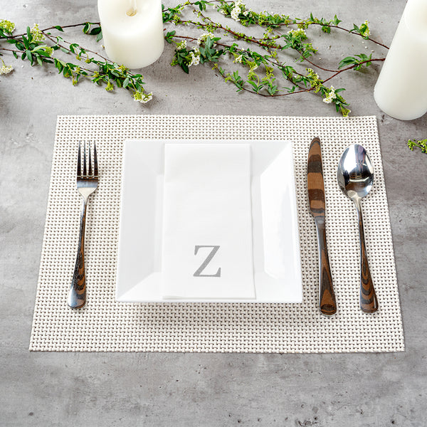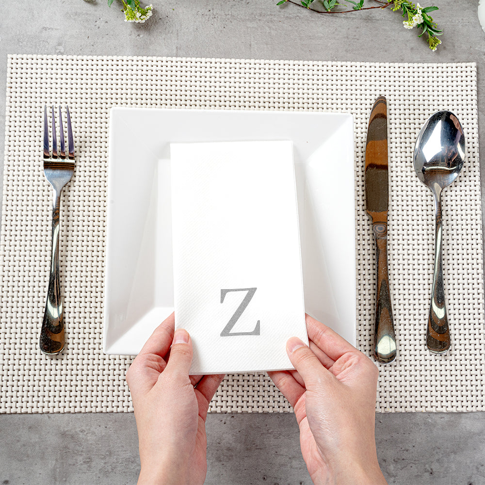 SILVER LETTER Z PAPER LINEN-FEEL GUEST TOWEL/NAPKIN - SANS SERIF FONT