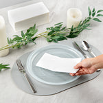 Experience the blend of style, convenience, and sustainability with our Luxenap Rectangle White Paper Linen-Feel Guest Towels / Napkins. With a high-end linen feel, these air-laid napkins add an unmistakable touch of elegance to your table decor. These paper serviettes impress with their quilted texture and superior absorbency providing comfort to the guests. With a biodegradable and commercially compostable design, these guest towels prioritize environmental responsibility. The white hue of these linen-feel paper napkins makes them perfect for a wide range of events like a luxurious wedding, an intimate dinner party, serving customers at a cafe, and impressing guests at catered events. Measuring 15.75 inches in length by 7.75 inches in width when open and 7.75 inches in length by 4 inches in width when conveniently pre-folded in a 1/4-fold, these disposable table napkins are equally suitable for use as guest towels or disposable hand towels in your bathroom. Sold in a 600 count box. These items will only degrade outside of the traditional solid waste stream.