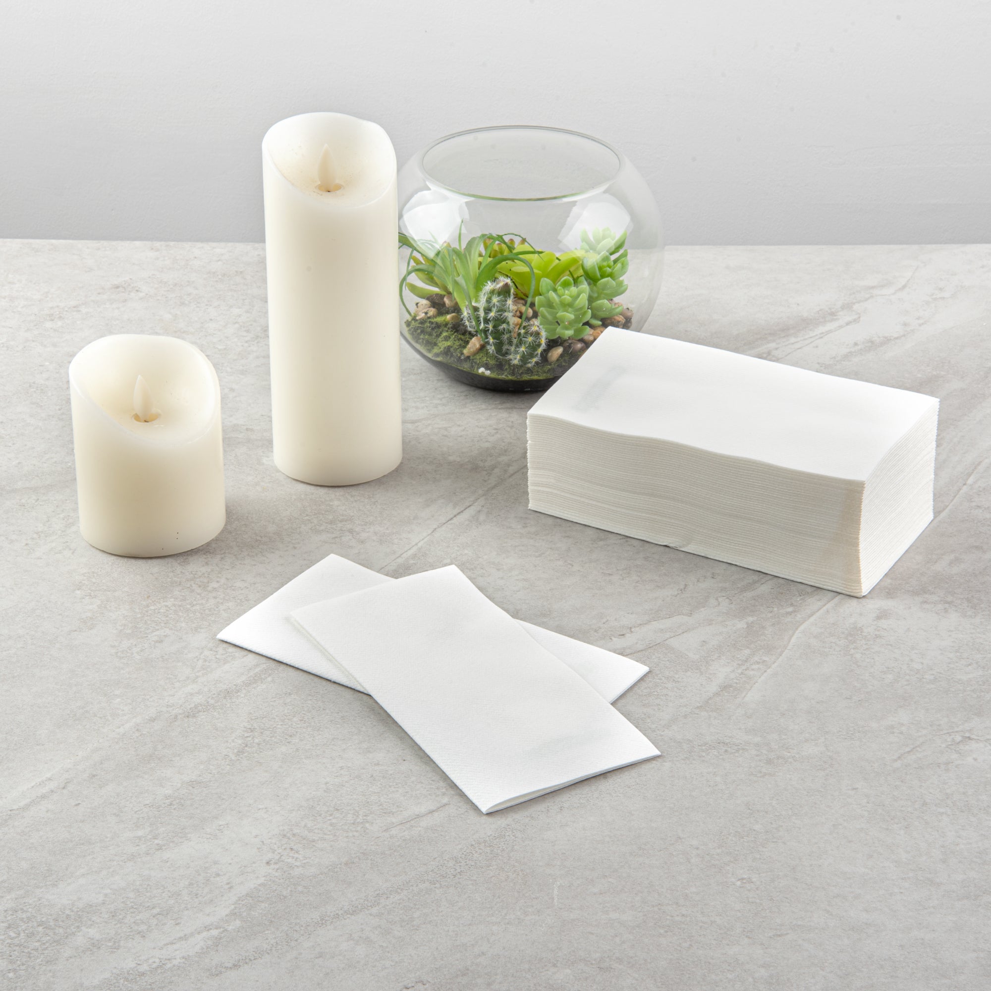 Experience the blend of style, convenience, and sustainability with our Luxenap Rectangle White Paper Linen-Feel Guest Towels / Napkins. With a high-end linen feel, these air-laid napkins add an unmistakable touch of elegance to your table decor. These paper serviettes impress with their quilted texture and superior absorbency providing comfort to the guests. With a biodegradable and commercially compostable design, these guest towels prioritize environmental responsibility. The white hue of these linen-feel paper napkins makes them perfect for a wide range of events like a luxurious wedding, an intimate dinner party, serving customers at a cafe, and impressing guests at catered events. Measuring 15.75 inches in length by 7.75 inches in width when open and 7.75 inches in length by 4 inches in width when conveniently pre-folded in a 1/4-fold, these disposable table napkins are equally suitable for use as guest towels or disposable hand towels in your bathroom. Sold in a 600 count box. These items will only degrade outside of the traditional solid waste stream.