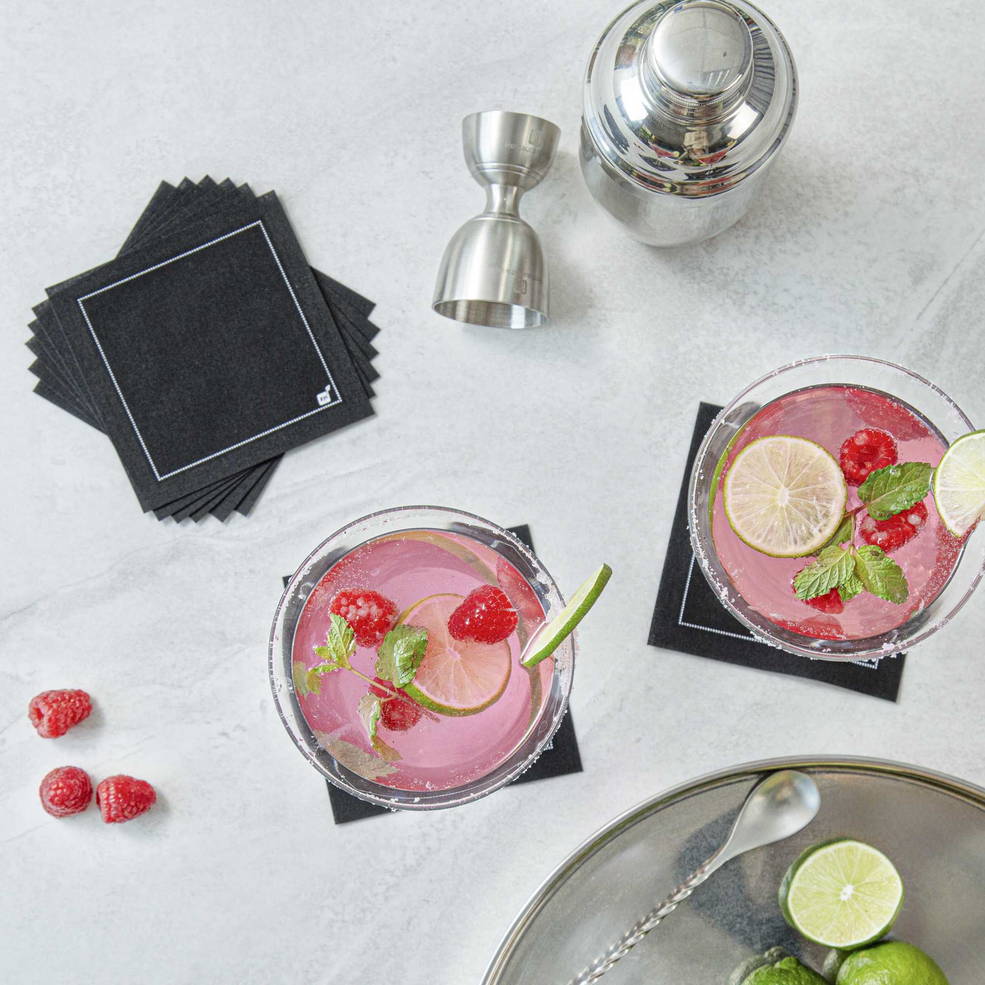 SQUARE BLACK COTTON COCKTAIL NAPKIN - ORGANIC, DISPOSABLE