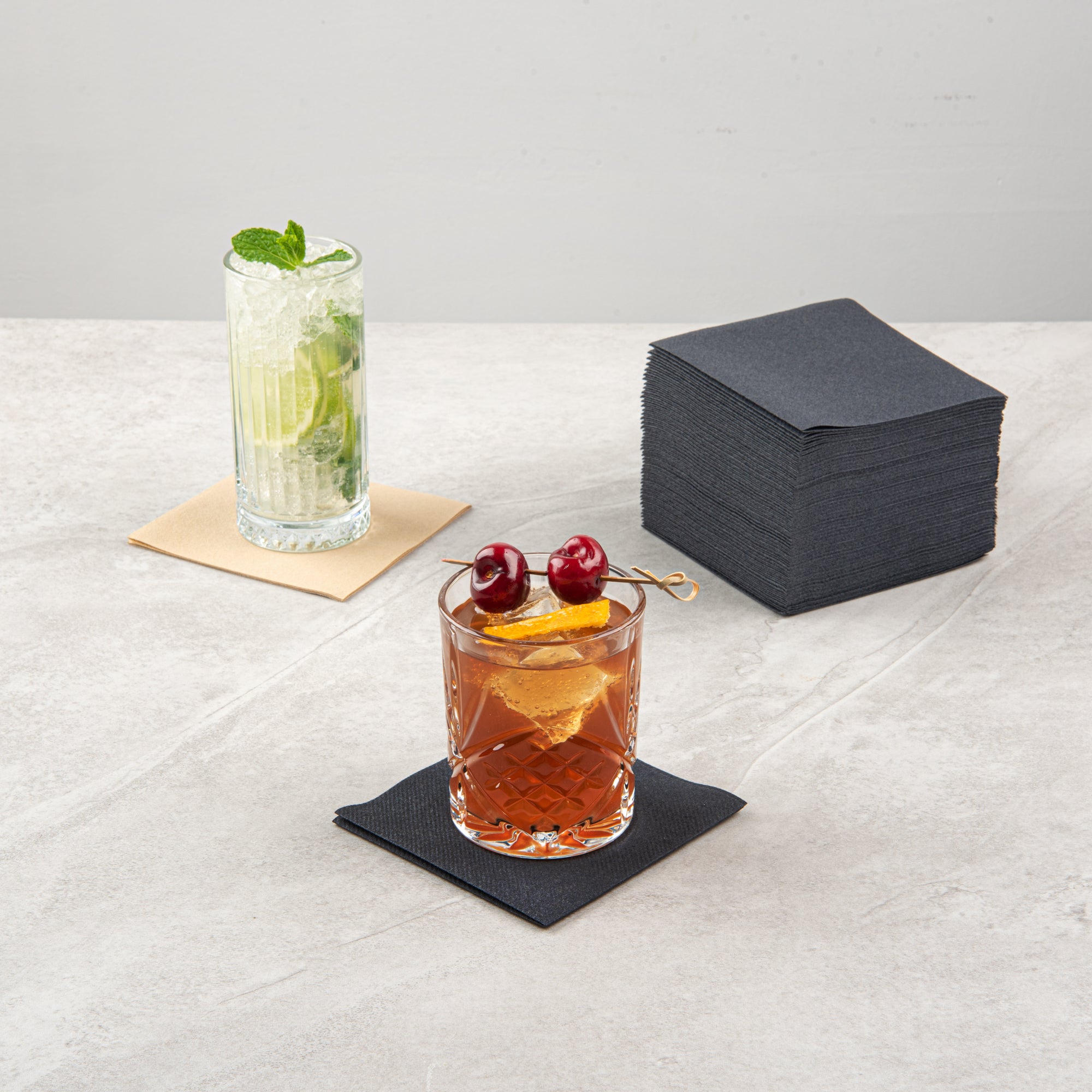 - Linen-feel paper elevates the quality of your cocktail service, offering a sophisticated touch