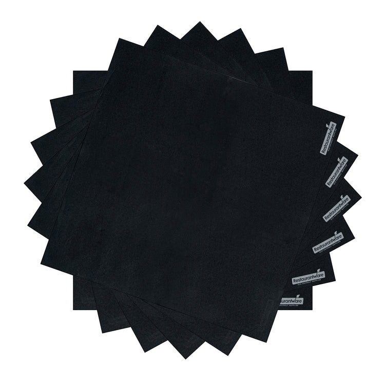 Add a sleek touch of style to your table settings with these Luxenap Micropoint 2-Ply Disposable Napkins. Made from thick 2-ply paper, these black dinner napkins are luxuriously soft and extremely absorbent. Their sturdy construction can be elegantly folded or rolled with silverware to create beautiful event tablescapes, while their conveniently disposable design ensures quick and easy cleanup. Featuring unique micropoint embossed detailing, these napkins add an extra touch of sophistication to any place setting. Use these black paper napkins as restaurant napkins to quickly reset bustling cafes and busy bistros -- or use them as stylish catering napkins to instantly upgrade the look of disposable tableware at catered events. Measuring 7.75 inches in length by 7.5 inches in width when folded, and 15.5 inches in length by 15.25 inches in height when unfolded, these large paper napkins easily cover customers' laps to keep clothing clean and protected. These napkins will arrive pre-folded in a 1,200 count box.