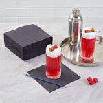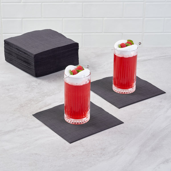 SQUARE BLACK PAPER NAPKIN - DOUBLE POINT, 2-PLY, WITH WHITE THREADS