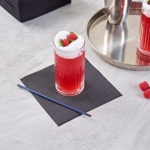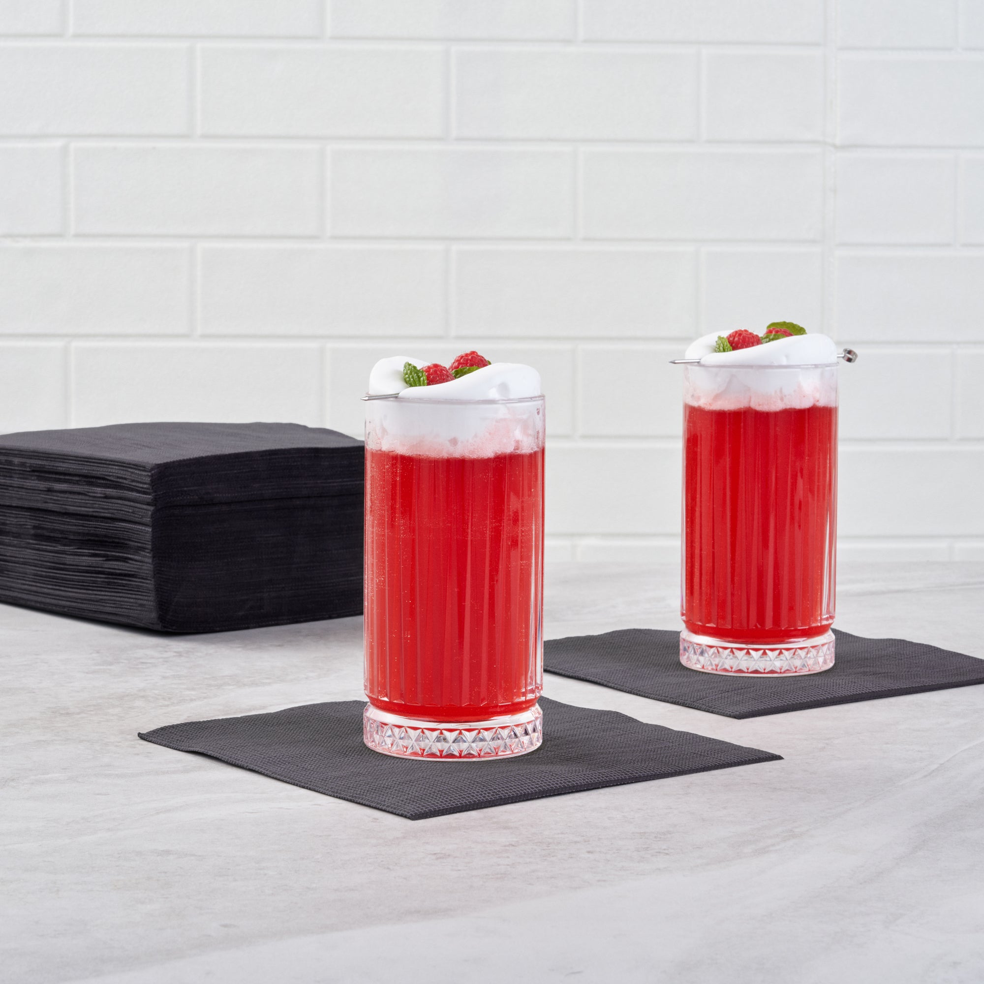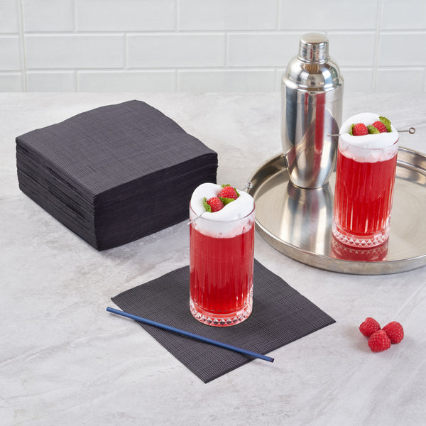 Enhance dining experiences effortlessly with versatile disposable napkins. Luxenap Double Point Embossing Black Paper Napkins combine 2-ply paper construction with ultra-absorbency, ensuring durability for a mess-free meal service. The double point design elevates the aesthetics of any table setting, making these black paper napkins ideal for upscale restaurants and catering events. Featuring elegant black napkins with distinctive white thread detailing, they offer a striking visual appeal that complements various decors. With dimensions of 15.75 inches by 15.75 inches, these napkins provide ample coverage, perfect for accommodating full-course meals while ensuring quick and efficient cleanup. Elevate your table presentation and operational efficiency with these sophisticated napkins. Each order includes 1200 Luxenap Double Point Embossing Black Paper Napkins.