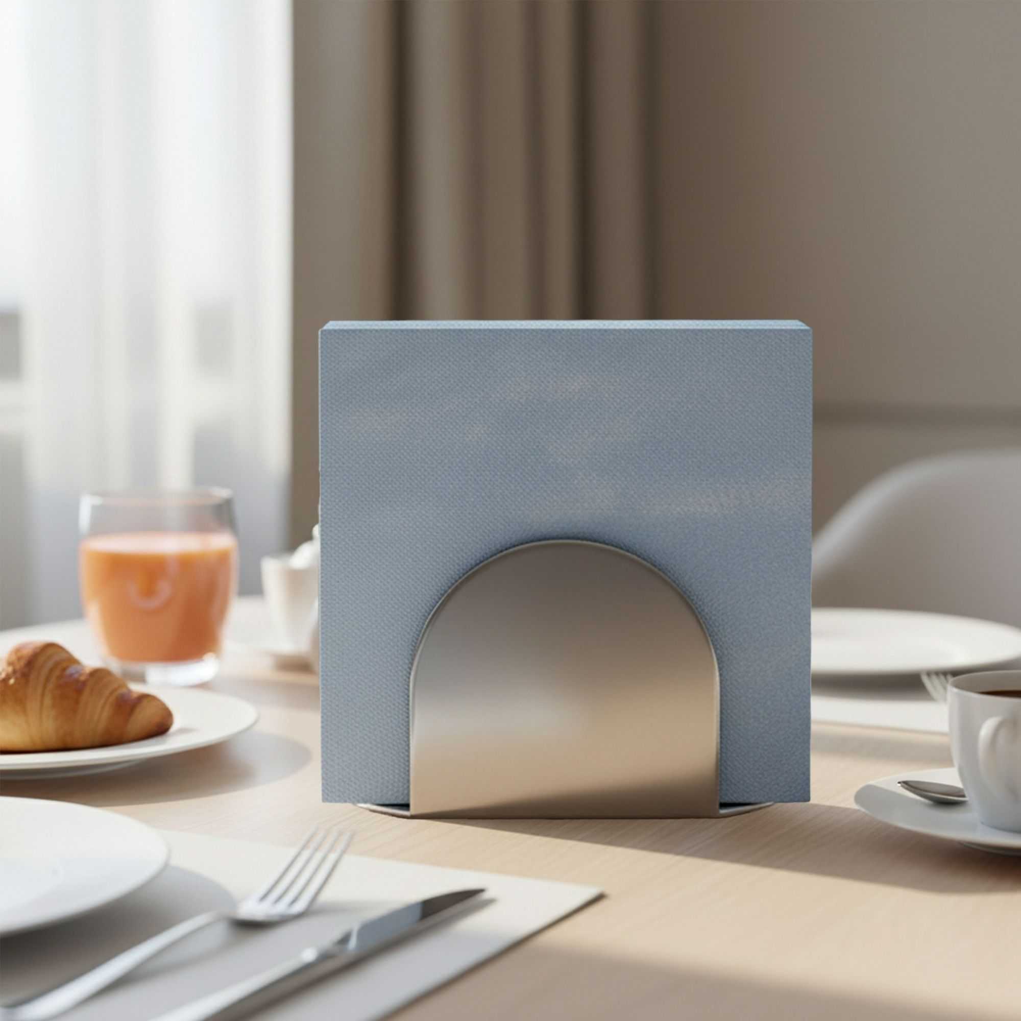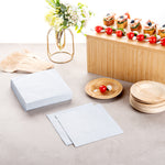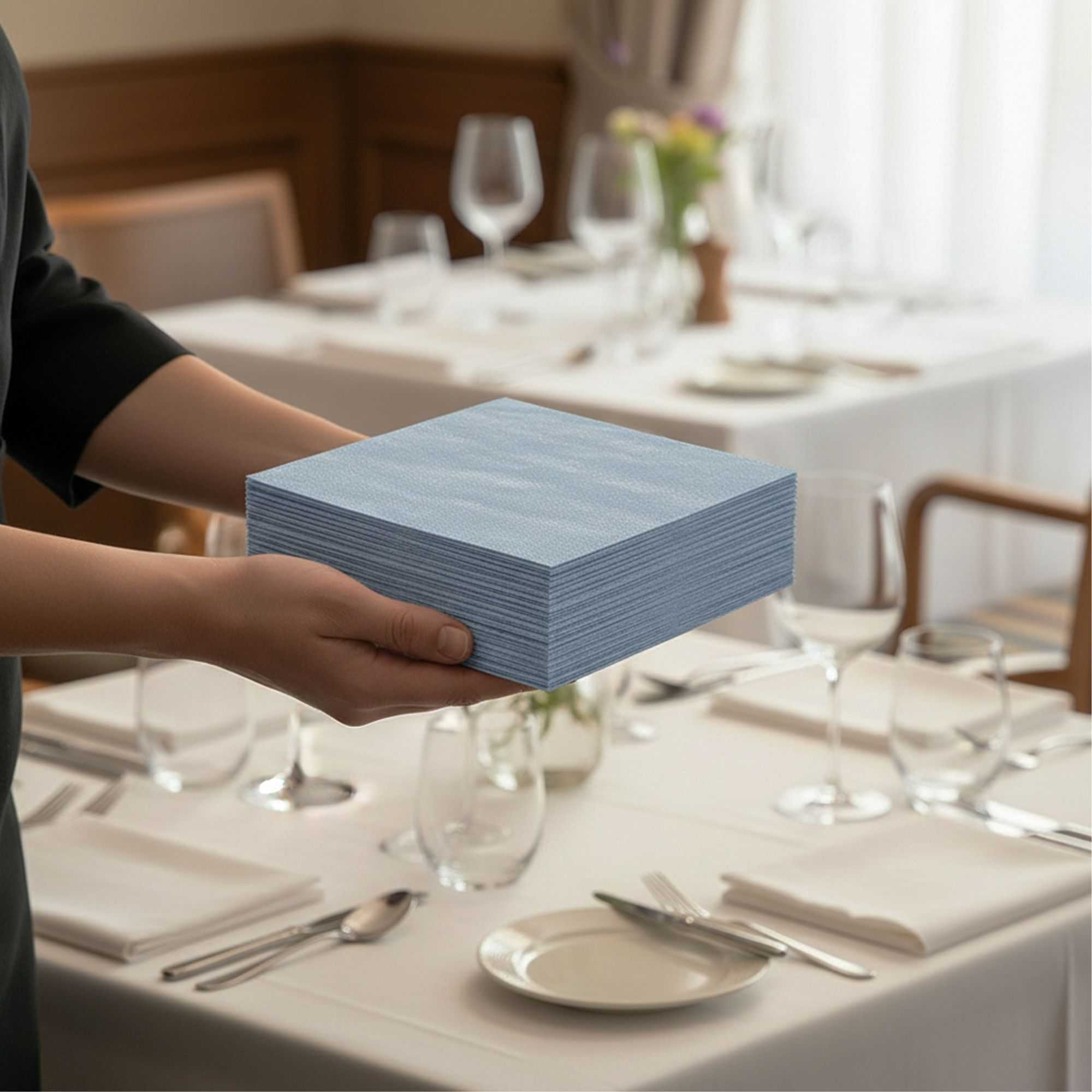 - Pre-folded napkins wrap around cutlery to easily set tables