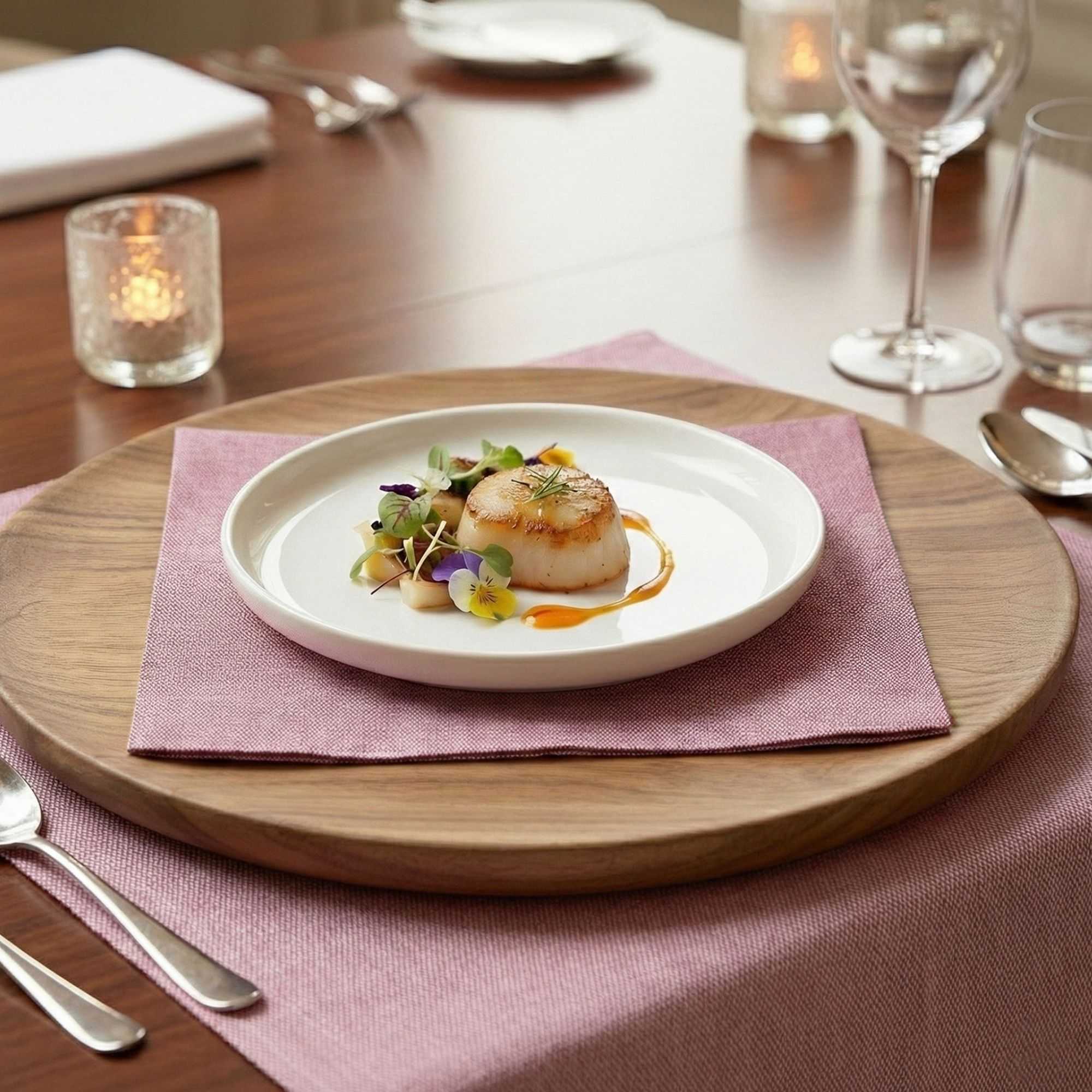 - Bordeaux denim finish offers a unique and elegant aesthetic to elevate table settings