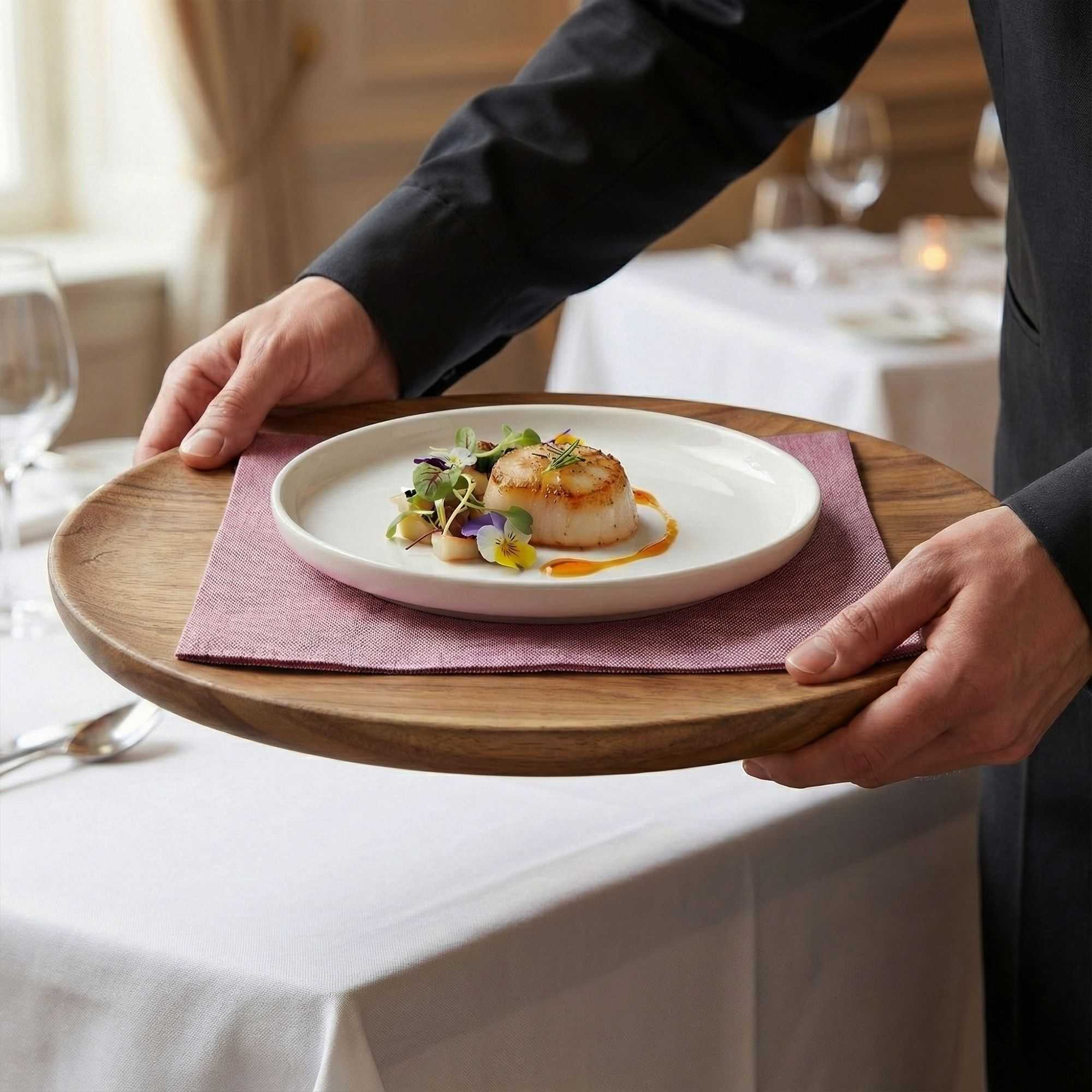 - Pre-folded napkins wrap around cutlery to easily reset tables