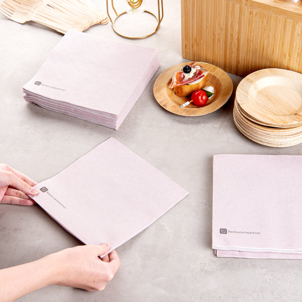 Merging the sophisticated look of linen napkins with the ultimate convenience of disposable paper napkins, our Luxenap linen-like paper napkins are perfect for restaurants, cafes, and catering companies. Their premium air laid paper construction makes them impressively strong and extremely absorbent, while their textile-like surface maintains the sumptuous feel and elegant drape of traditional linen napkins. Featuring an exquisite denim-inspired bordeaux print, these unique paper napkins will bring a refined touch of style to any table setting for any occasion. Pair these patterned paper napkins with our extensive selection of disposable flatware to complete the look! Measuring a large 16 inches by 16 inches when unfolded, these stylish paper napkins will arrive pre-folded in ready-to-use 8-inch by 8-inch squares. Available in a 25 count box.