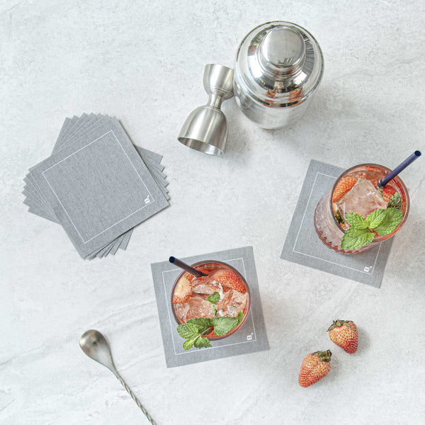 SQUARE GRAY COTTON COCKTAIL NAPKIN - ORGANIC, DISPOSABLE