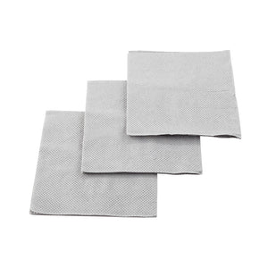 Bring a modern touch to drink services with our Luxenap Micropoint 2-Ply Gray Disposable Cocktail Napkins. Featuring a sophisticated gray coloring with micropoint detailing, these high-quality paper napkins add a contemporary look to your bar, restaurant, catering event, and more. Crafted from premium paper, these 2-ply cocktail napkins are exceptionally absorbent and recyclable. Use these gray paper napkins to beautifully serve miniature appetizers at a catered luncheon, or to stylishly present hand-crafted cocktails at a bar. These disposable paper napkins measure 8 inches long by 8 inches wide unfolded and 4 inches long by 4 inches wide folded. These napkins will ship in a 4,800 count box.