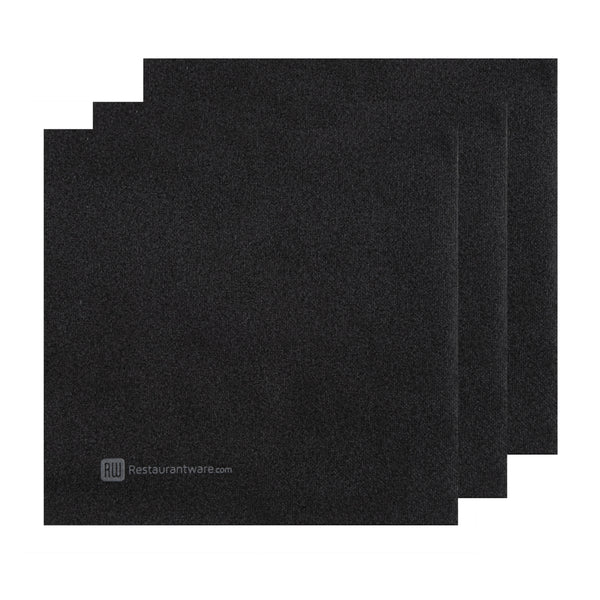 Our collection of Luxenap Air Laid Disposable Napkins combine the luxurious feel of linen napkins with the ultimate convenience of paper napkins. Crafted from premium air laid paper, these sophisticated black linen-like dinner napkins are extremely absorbent and incredibly strong. Their textile-like surface is non-linting and static-free -- so that your customers' clothing stays pristine and protected. Featuring a sumptuously soft construction, you can use these luxury paper napkins anywhere you would use linen napkins. They're great to quickly reset the tables at a bustling bistro, or to instantly upgrade the look of disposable flatware at a catered event. For your convenience, these universally flattering black paper napkins will arrive pre-folded in ready-to-use 8-inch by 8-inch squares -- so your staff won't have to waste time intricately folding napkins or rolling silverware. Available in a 25 count box. Note: A small Restaurantware logo is printed on each napkin.
