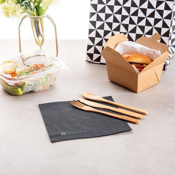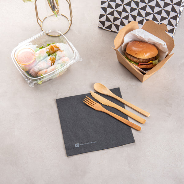 - Pre-folded napkins wrap around cutlery to easily set tables