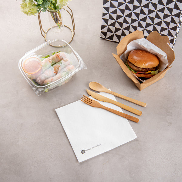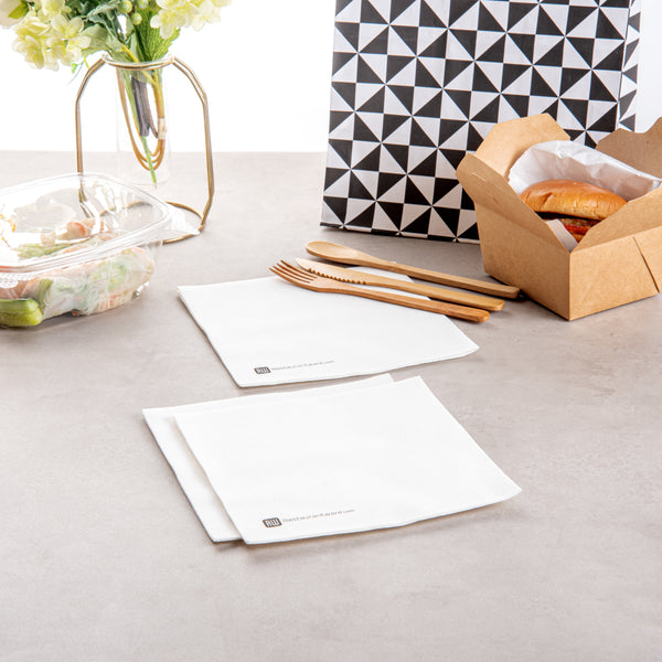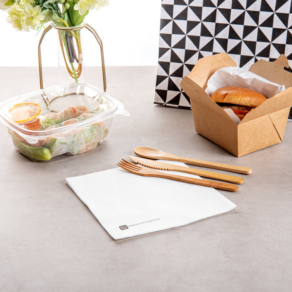 - Pre-folded napkins wrap around cutlery to easily set tables