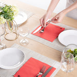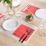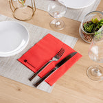 Complete the look of your upscale event with our Luxenap Micropoint 2-Ply Disposable Napkins. With a 2-ply paper construction, these disposable napkins are extremely absorbent, strong, and recyclable! Featuring a bold red coloring and embossed microprint detailing, these elegant paper napkins make a stylish statement to place settings and tablescapes. These chic red paper napkins are great for beautifully setting tables at your next catering event or alongside delicious dishes served at your restaurant. Measuring 15.5 inches in length by 15.25 inches in height unfolded, these high-quality disposable napkins, seamlessly prevent unsightly messes for any occasion. These conveniently pre-folded 7.75-inch by 7.5-inch square napkins are available in a 50 count box.