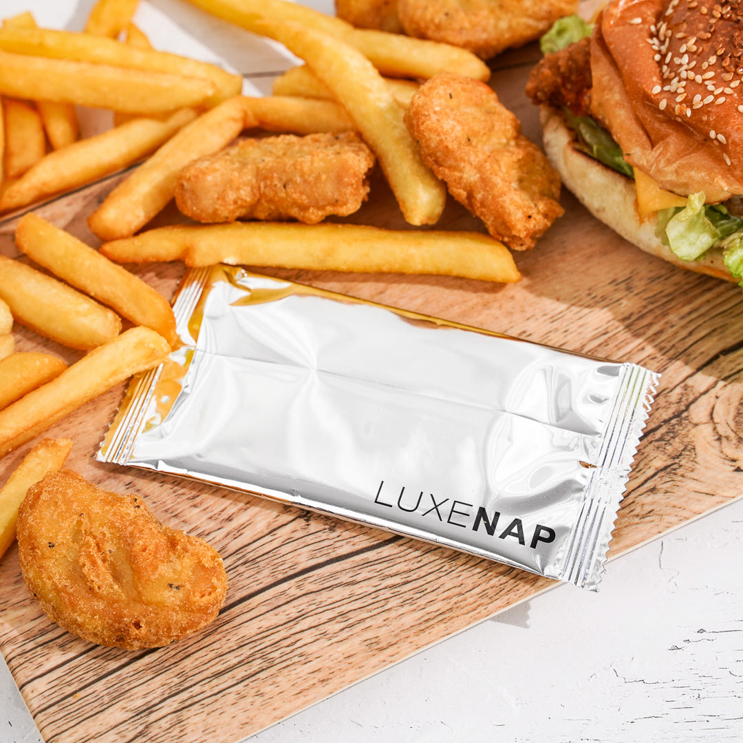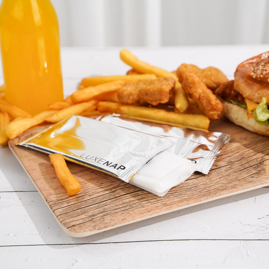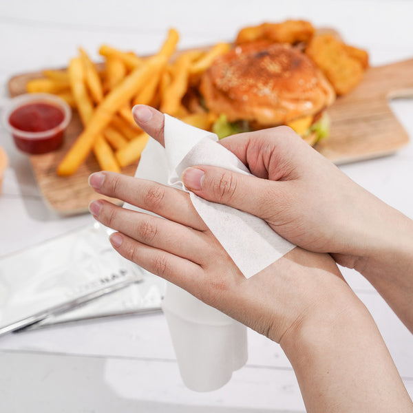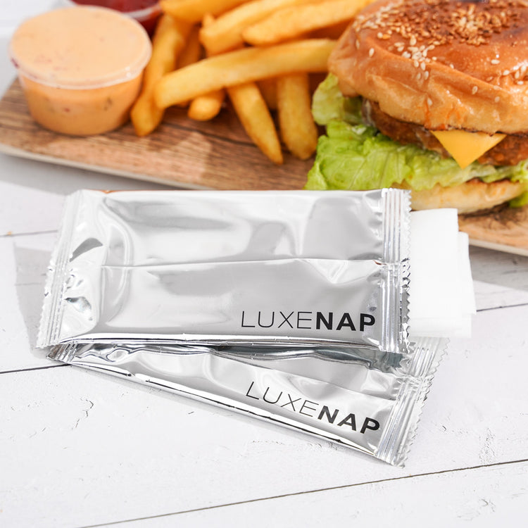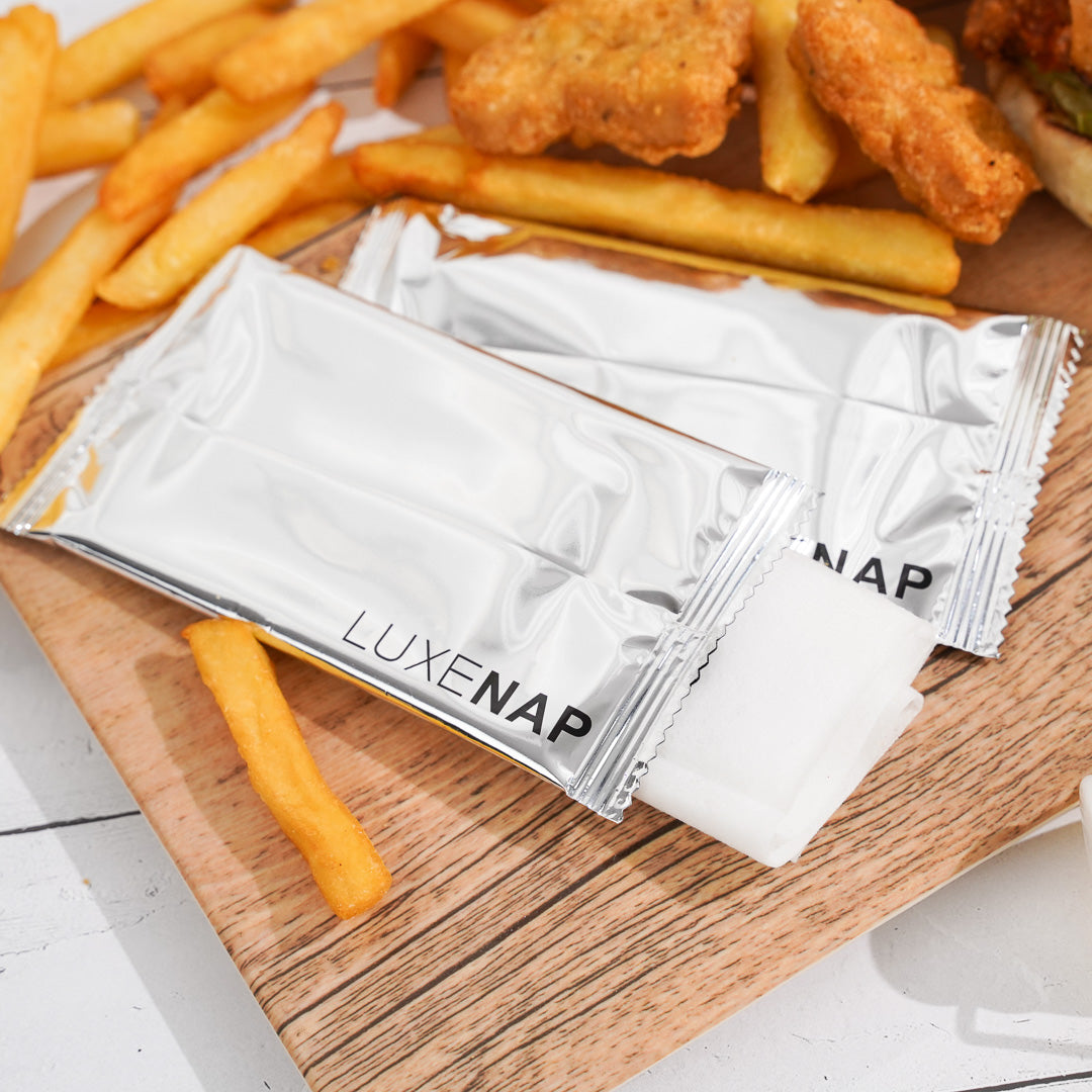 Allow guests to easily remove sticky residue from their hands with our Luxenap White Moist Towelettes. These alcohol-free wipes allow customers to easily remove residue from their fingers and are gentle on the skin. Featuring a fresh aloe scent, these moist towelettes ensure your customers feel refreshed and rejuvenated after wiping their hands. These individual towelettes provide customers with a quick and effective way to remove sauces from their hands after enjoying meals. Each non-woven towelette is individually wrapped to prevent it from drying out and allows guests to wipe their hands at any time. Plus, they can be easily distributed to dine-in customers and stored inside take out bags. These scented wipes measure 5.25 inches long by 2.5 inches wide. Sold in a 100 count box. Active ingredients: 0.1% Benzalkonium Chloride.
