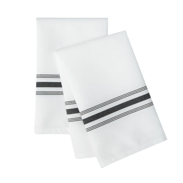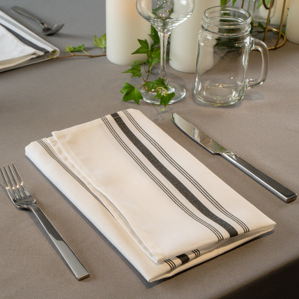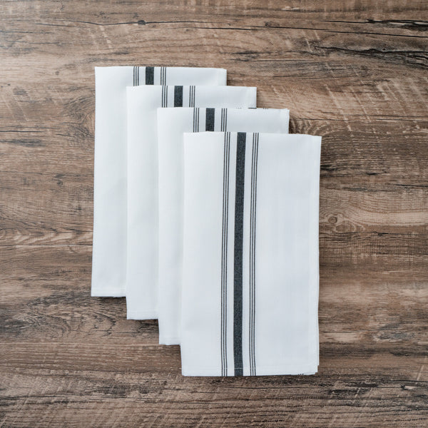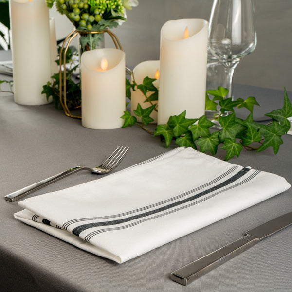 WHITE WOVEN CLOTH BISTRO NAPKIN - BLACK STRIPE