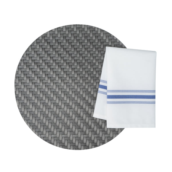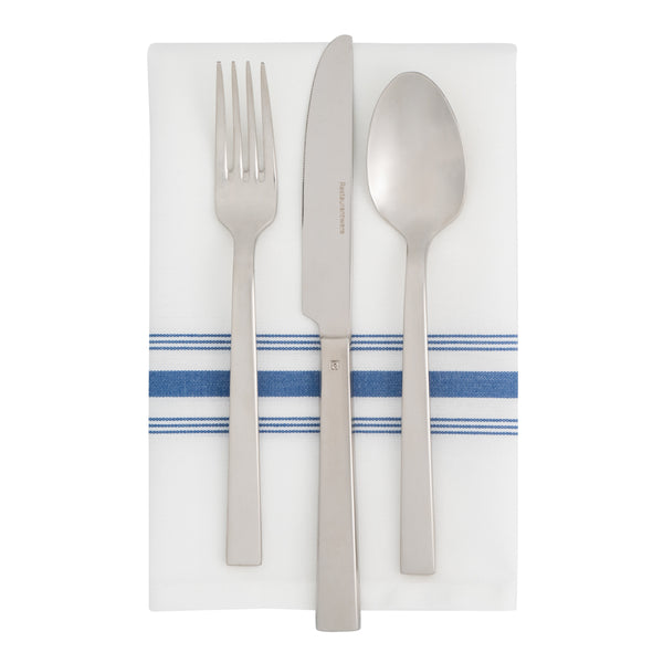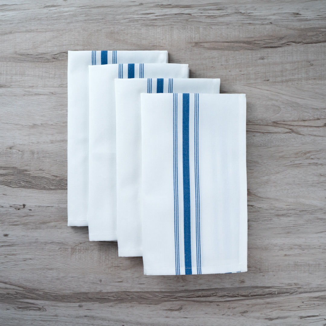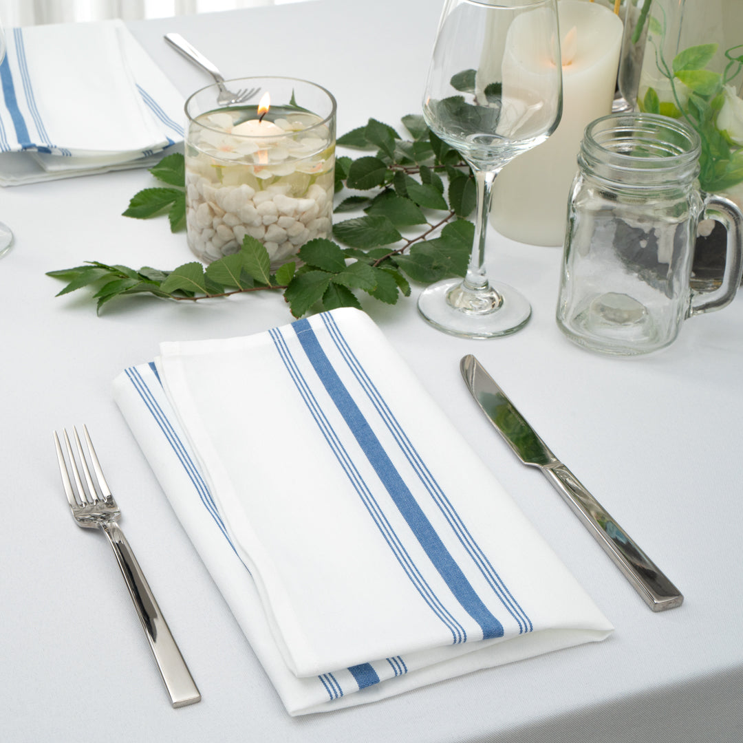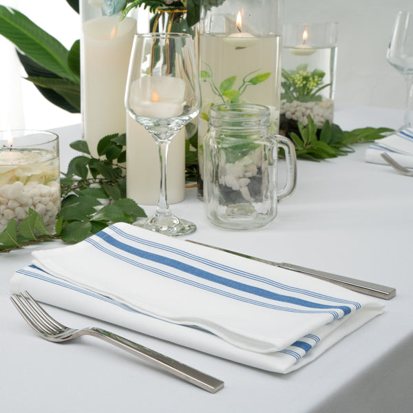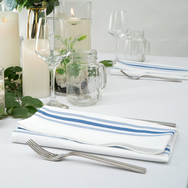 WHITE WOVEN CLOTH BISTRO NAPKIN - BLUE STRIPE