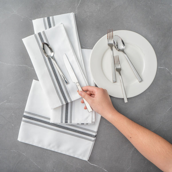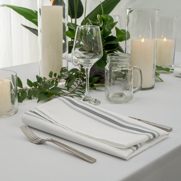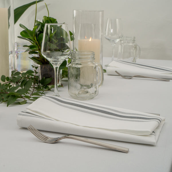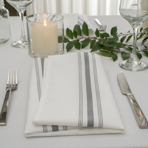 WHITE WOVEN CLOTH BISTRO NAPKIN - GRAY STRIPE