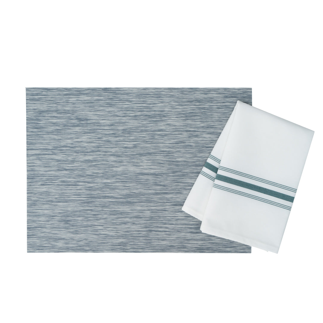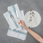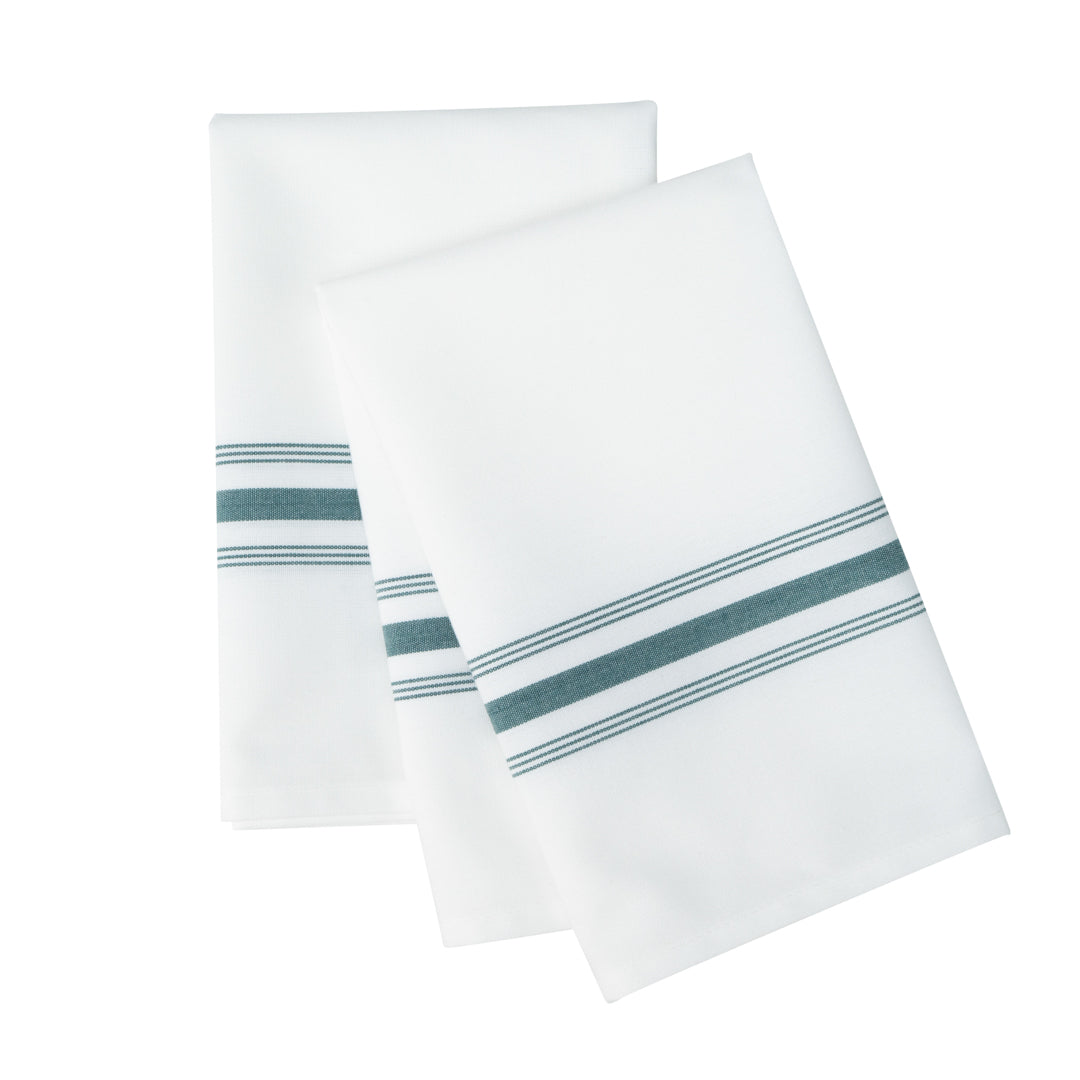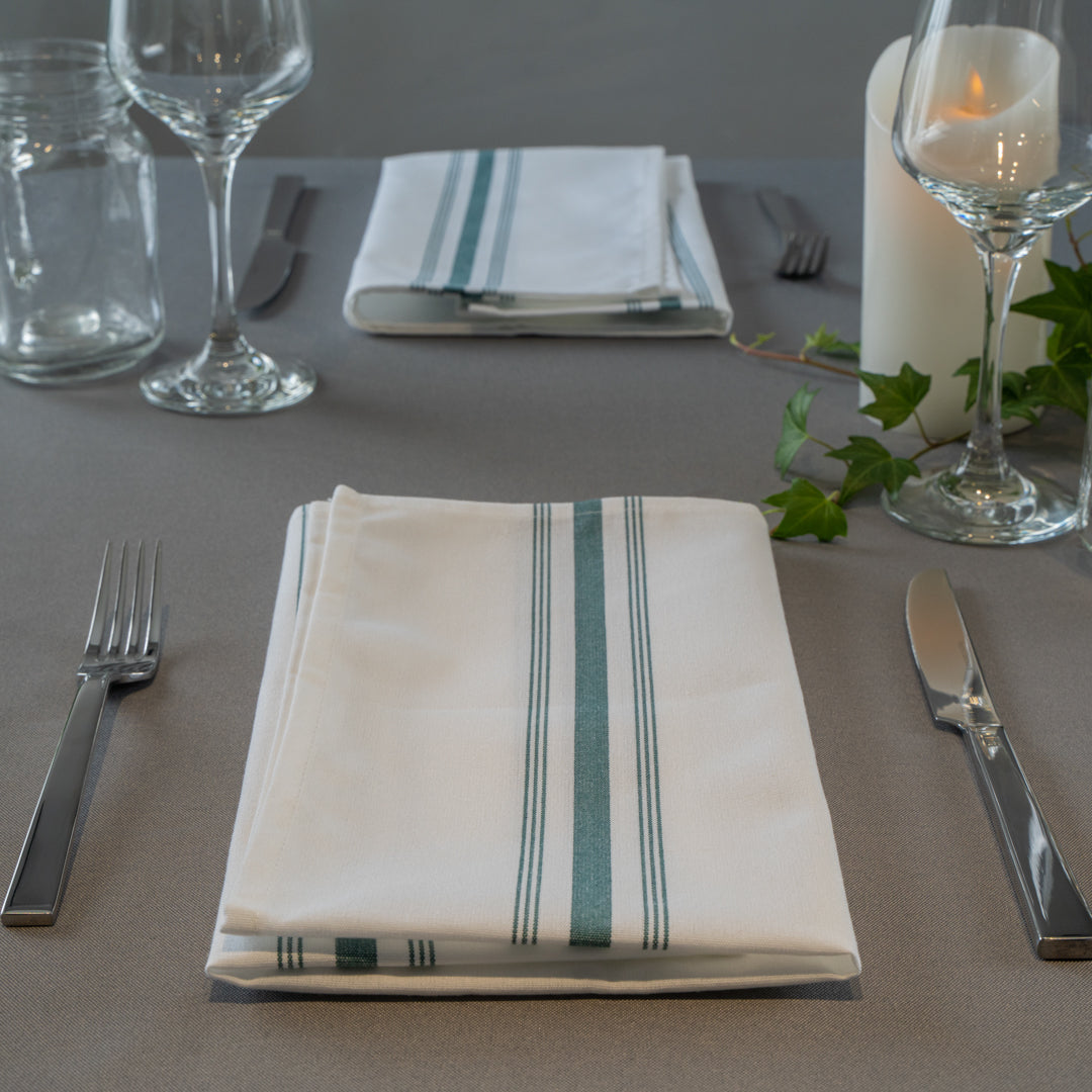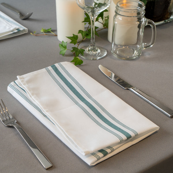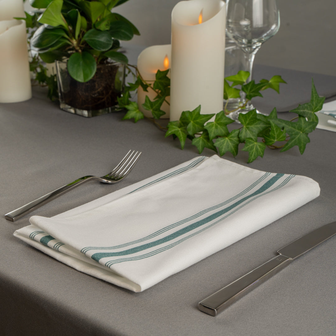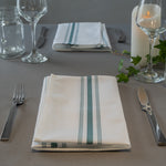 WHITE WOVEN CLOTH BISTRO NAPKIN - GREEN STRIPE