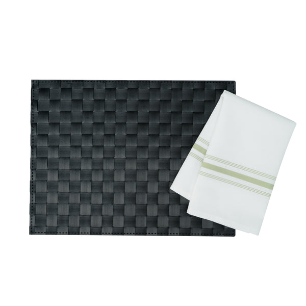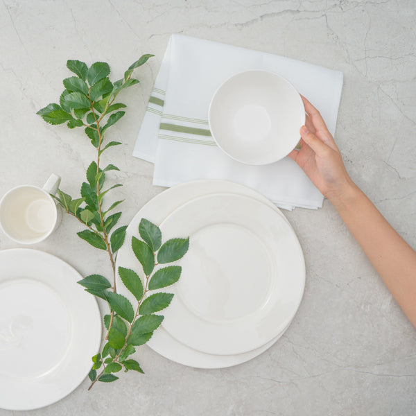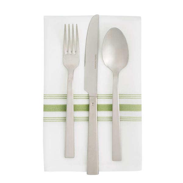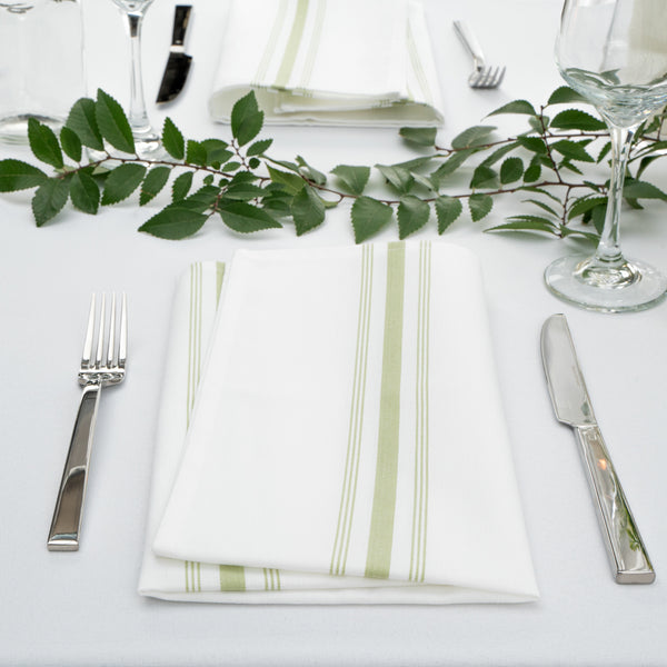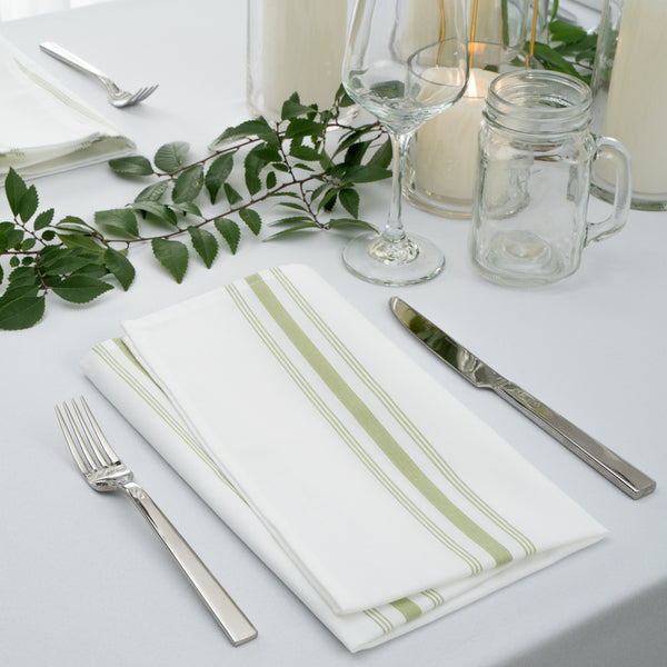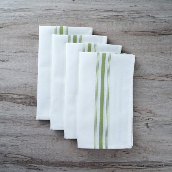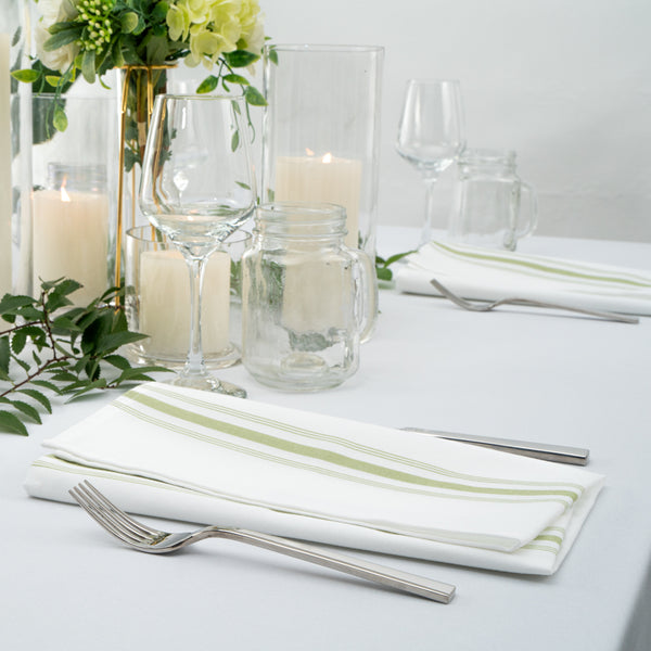WHITE WOVEN CLOTH BISTRO NAPKIN - LIME GREEN STRIPE
