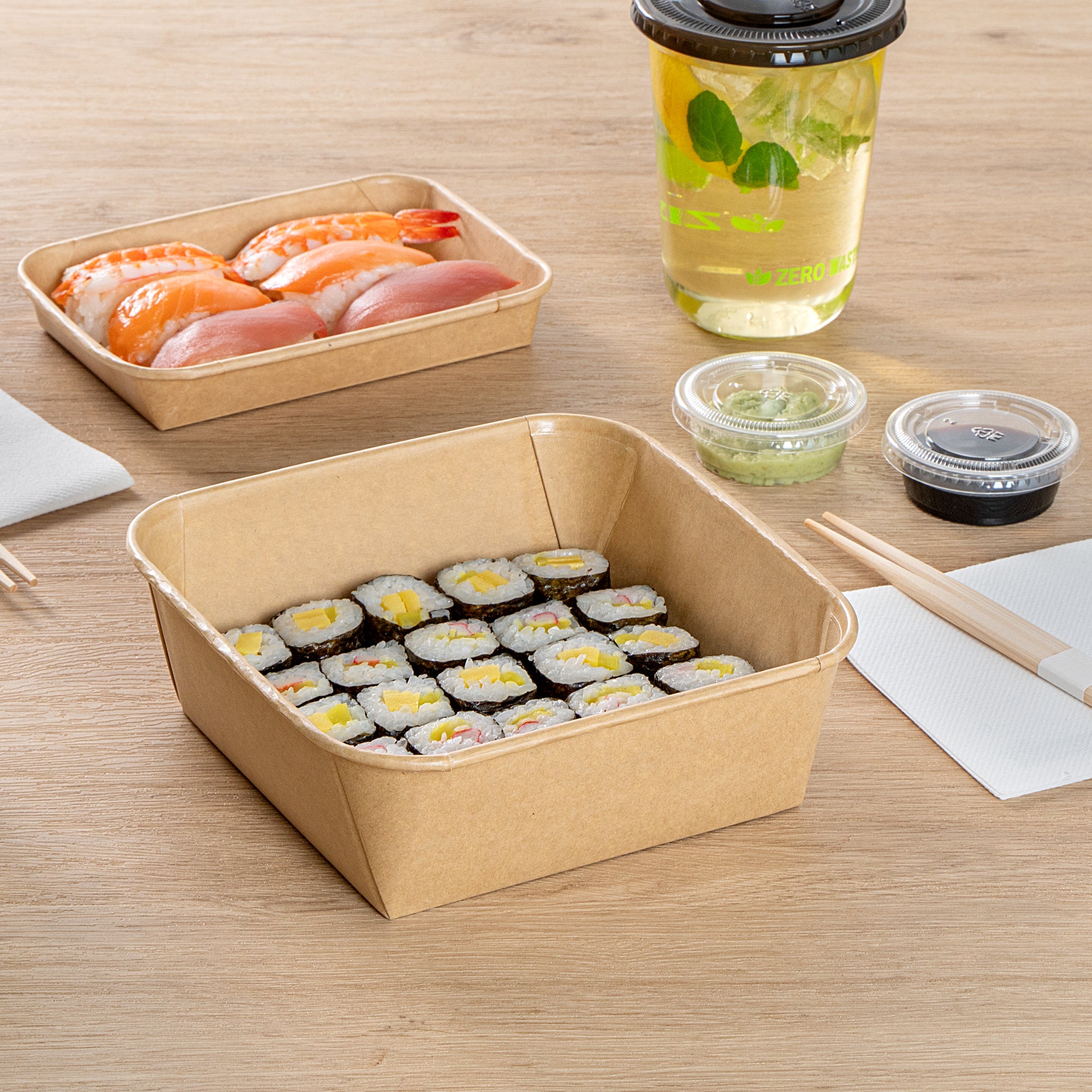 45 OZ SQUARE KRAFT PAPER SUSHI CONTAINER