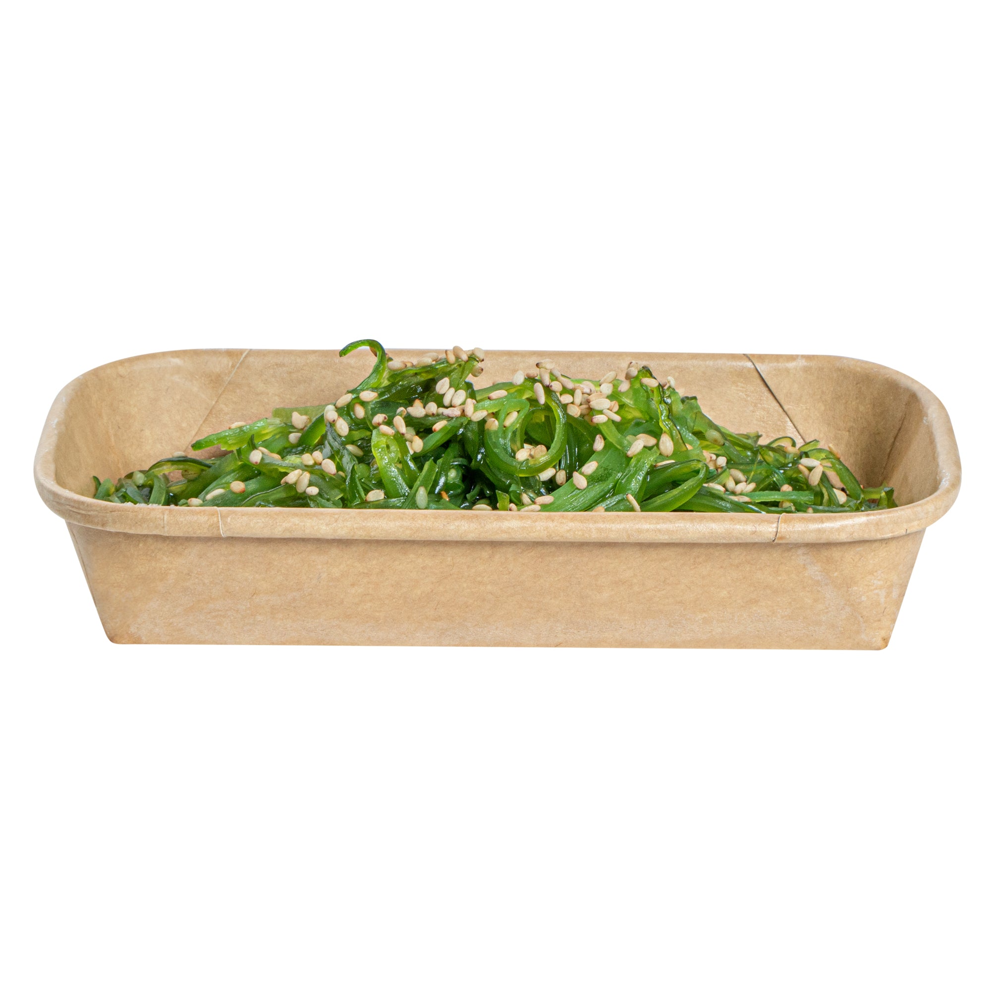 Elevate your food presentation with our Matsuri Vision 5-ounce Rectangle Kraft Paper Sushi Containers. These sushi boxes feature a greaseproof PE coating that prevents sauces and oils from leaking through, ensuring a mess-free dining experience. Pair these to go containers with their coordinating clear plastic lids (SKU: RWA1440C) to create a snug seal, keeping your food intact in transit. These carry out containers are freezer-safe, allowing you to store leftovers in the refrigerator for later use without compromising freshness. Made from durable paper, these take out boxes are ideal for packing a wide variety of cold food items, including sandwiches or salads. Designed with a sturdy base, these paper take out boxes hold your handcrafted sushi, ensuring safe and convenient transport. These takeaway boxes are disposable and can be discarded after use, ensuring post-meal cleanup is a breeze. The kraft finish of these rectangle take out containers adds a natural and rustic charm, perfect for showcasing your delicious food offerings. To help minimize your carbon footprint, these sushi containers are recyclable and offer a better alternative to traditional plastic containers. Measuring 5.5 inches in length by 3.25 inches in width by 1 inch in height these take out containers have a capacity of 5 ounces and offer ample space for sushi rolls. Sold in a 100 count box. Lids are available and sold separately.