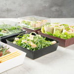 To take meals with you, our containers can be covered with our matching lids to securely seal your food. By combining containers with our crystal clear lids, guests will be able to take a peek inside each container.