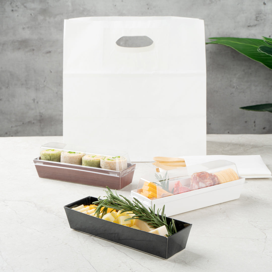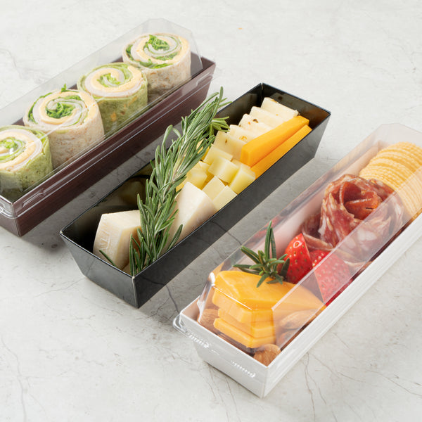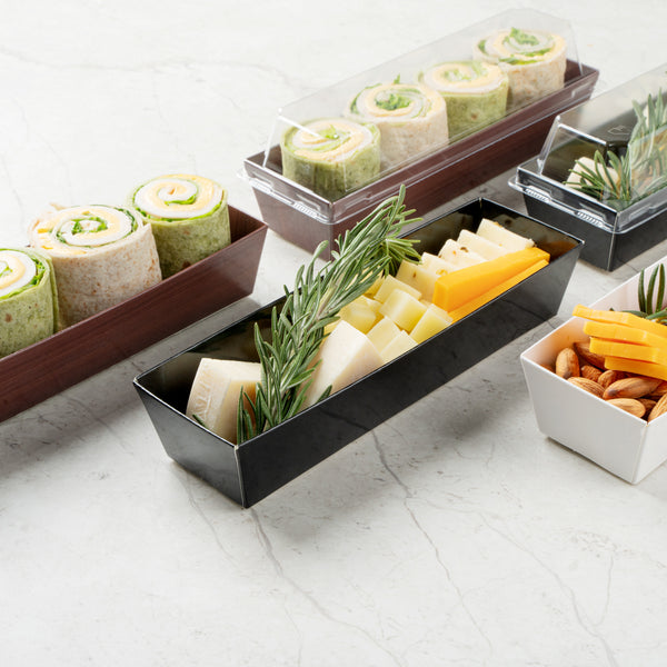 Choose from our kraft, black, white, or wood grain take out containers to complement the colors of food and match the theme of your event. Find the color that suits your needs!