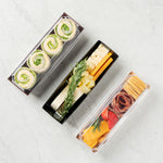 Sturdy paper construction holds the weight of multiple sushi rolls or other meals without bending or breaking. Keep meals securely contained!