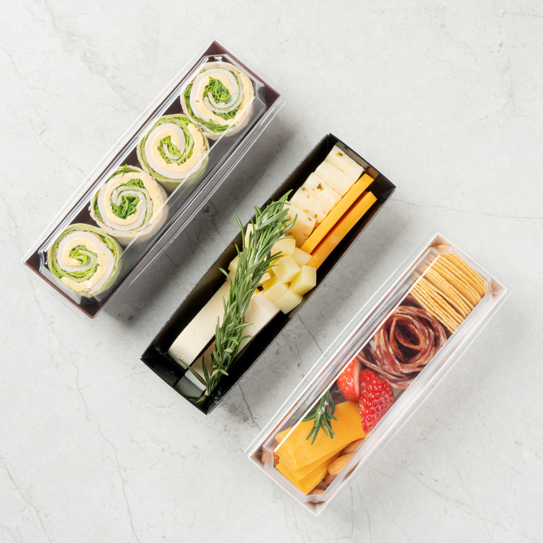 To take meals with you, our containers can be covered with our matching lids to securely seal your food. By combining containers with our crystal clear lids, guests will be able to take a peek inside each container.