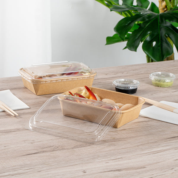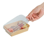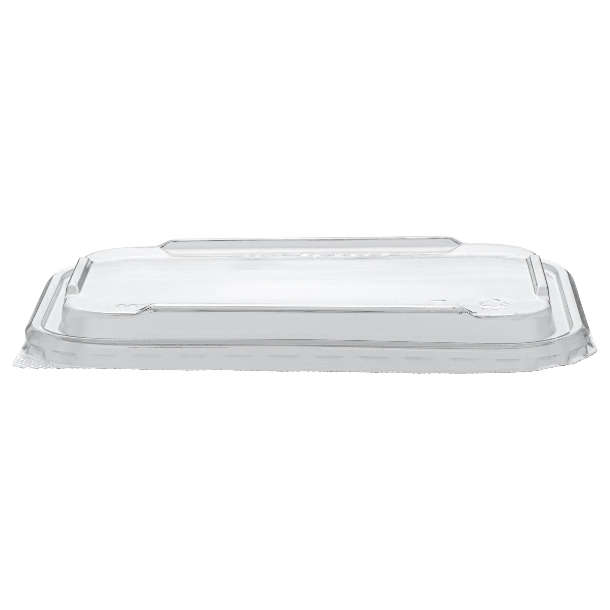 Enhance your food presentation with our Matsuri Vision Clear PET Plastic Lids. Pair these plastic lids with our collection of compatible Matsuri Vision sushi containers to form a tight seal and prevent accidental openings or spills while on the go. With an anti-fog design, these lids for food containers avoid build up condensation, ensuring customers can easily see the contents inside without obstruction. These container lids have a crystal-clear finish and beautifully showcase your culinary creations' vibrant colors and textures. Crafted from premium plastic, these clear lids are durable and sturdy, ideal for securely packing your sushi. These clear plastic lids are disposable and can be discarded for an easy post-meal cleaning experience. Suitable for eco-conscious restaurants, these disposable lids are recyclable and offer a better alternative to traditional plastic lids. Each to go sushi container lid measures 6.75 inches in length by 4.75 inches in width by 0.75 inches in height. Sold in a 100 count box. Containers are available and sold separately.