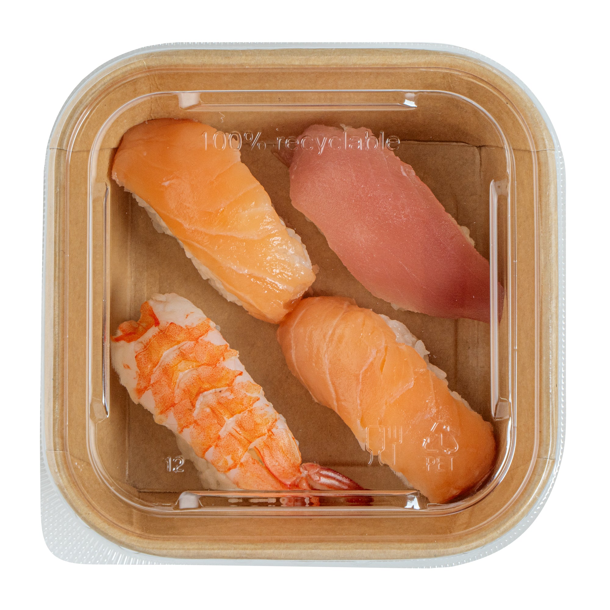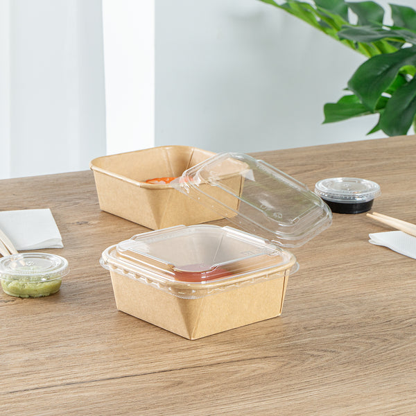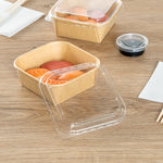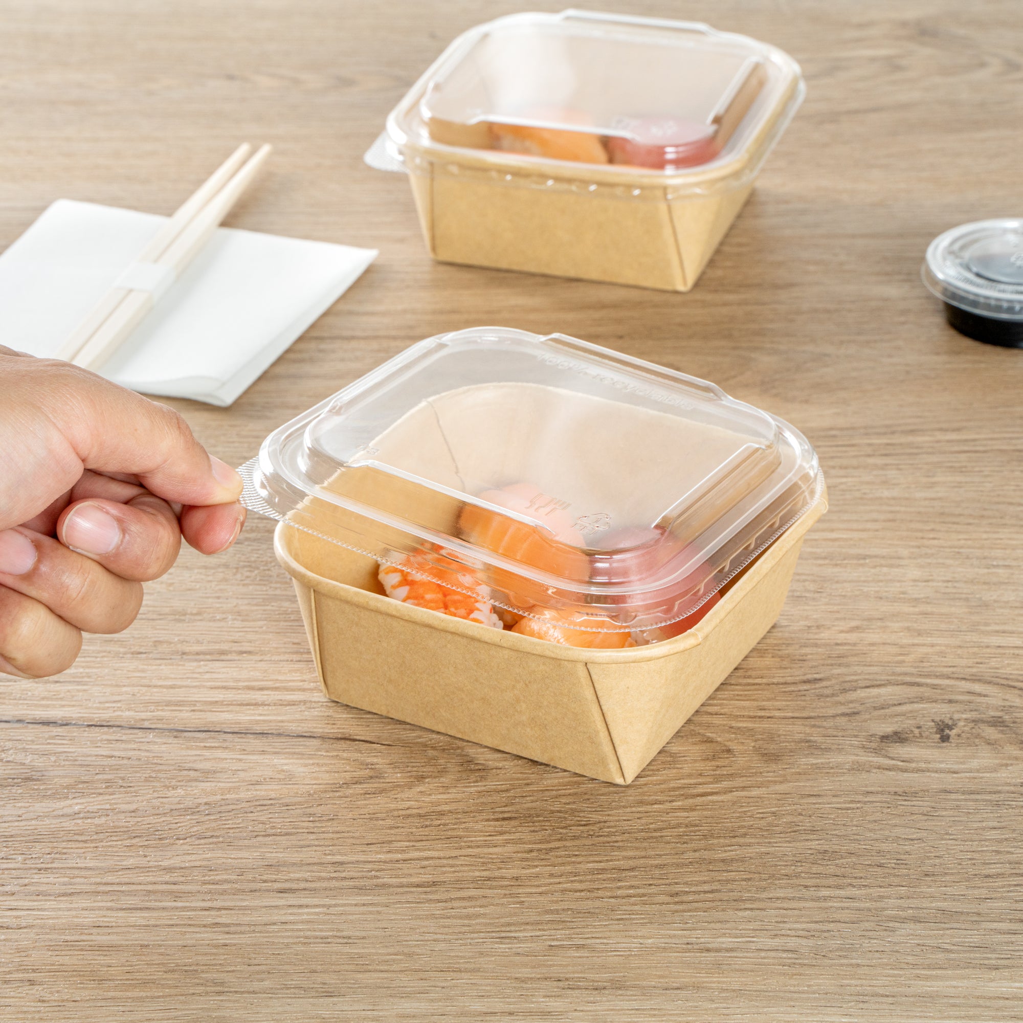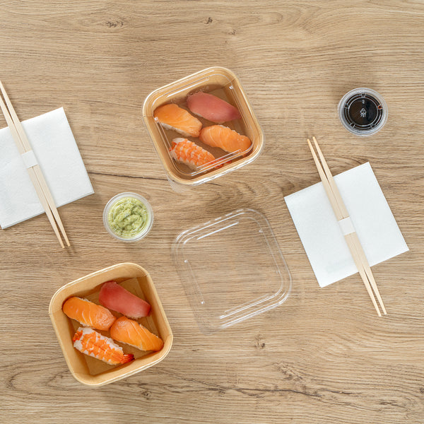 Showcase your sushi creations with our Matsuri Vision Clear PET Plastic Lids. These plastic lids can be paired with matching containers (SKUs: RWA1461K and RWA1462K) and form a tight seal, preventing accidental openings or spills during transit. With an anti-fog design, these lids for food containers avoid condensation buildup, ensuring that customers can easily see the delicious contents inside without obstruction. Featuring a crystal clear finish, these container lids beautifully showcase the vibrant colors and textures of your exquisite sushi. Crafted from premium plastic, these clear lids are durable and sturdy, keeping your culinary creations securely packed. These disposable lids can be discarded after use and help shorten your cleaning process. Suitable for ecologically-conscious foodservice establishments, these to go sushi container lids are recyclable and help minimize your carbon footprint. Each transparent lid measures 5.25 inches in length by 5.25 inches in width by 0.75 inches in height. Sold in a 100 count box. Containers are available and sold separately.