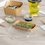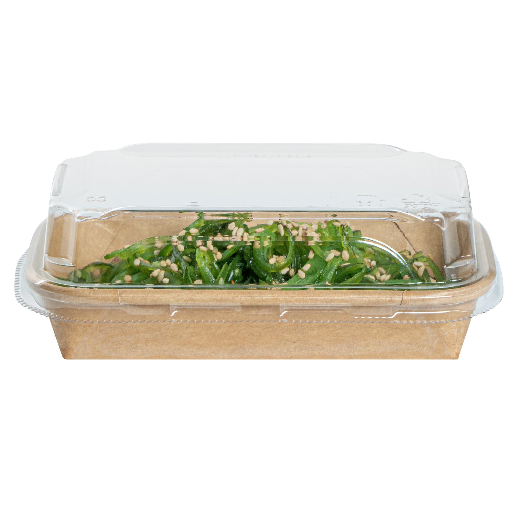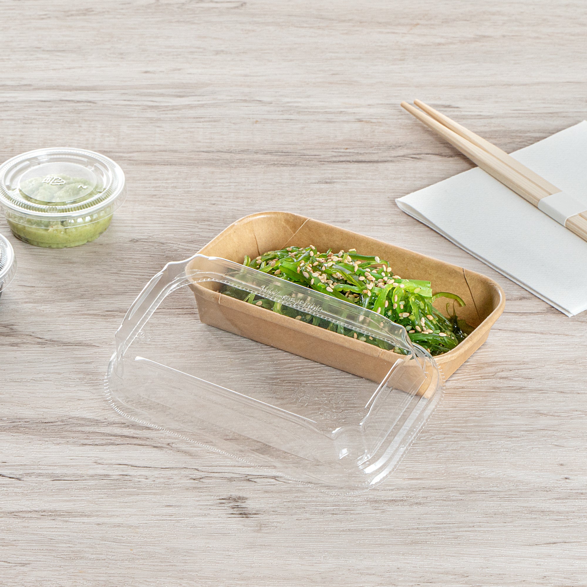 Protect your food toppings with our Matsuri Vision Clear PET Plastic Lids. These plastic lids form a tight-fitting seal with their coordinating sushi containers (SKU: RWA1439K-50) and keep your food intact during transit. Featuring an anti-fog design, these clear lids prevent condensation buildup, allowing customers to easily see the mouthwatering contents inside. These dome lids provide ample room and ensure the delicate arrangements of sushi rolls, nigiri, or sashimi are protected without being squashed or smudged. With a crystal clear finish, these container lids showcase the vibrant colors and appetizing presentation of the sushi inside. These lids for food containers are made from premium PET plastic for robust durability and sturdiness. Ideal for eco-conscious foodservice establishments, these disposable lids are recyclable to minimize your carbon footprint. For an easy cleanup, these to go sushi container lids are disposable and can be discarded after use. Measuring 5.5 inches in length by 3.25 inches in width by 1.25 inches in height, these clear plastic lids offer a perfect fit for your needs. Sold in a 50 count box. Containers are available and sold separately.
