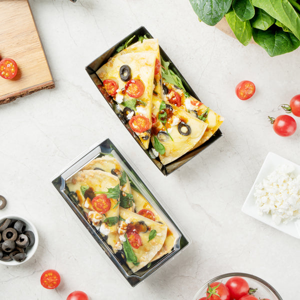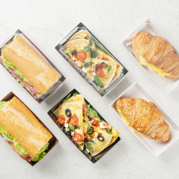 To take meals with you, our containers can be covered with our matching lids to securely seal your food. By combining containers with our crystal clear lids, guests will be able to take a peek inside each container.