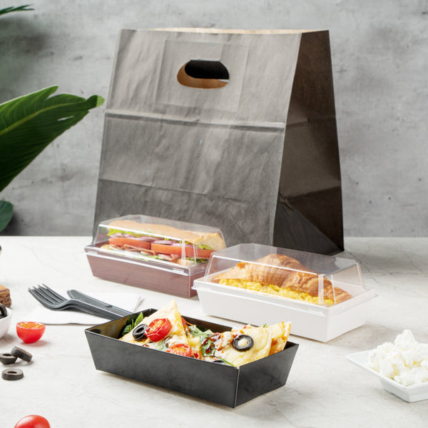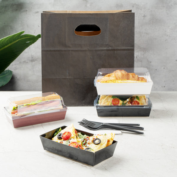 Choose from our kraft, black, white, or wood grain take out containers to complement the colors of food and match the theme of your event. Find the color that suits your needs!