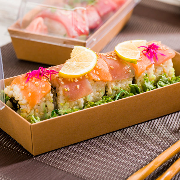 Sturdy paper construction holds the weight of multiple sushi rolls or other meals without bending or breaking. Keep meals securely contained!