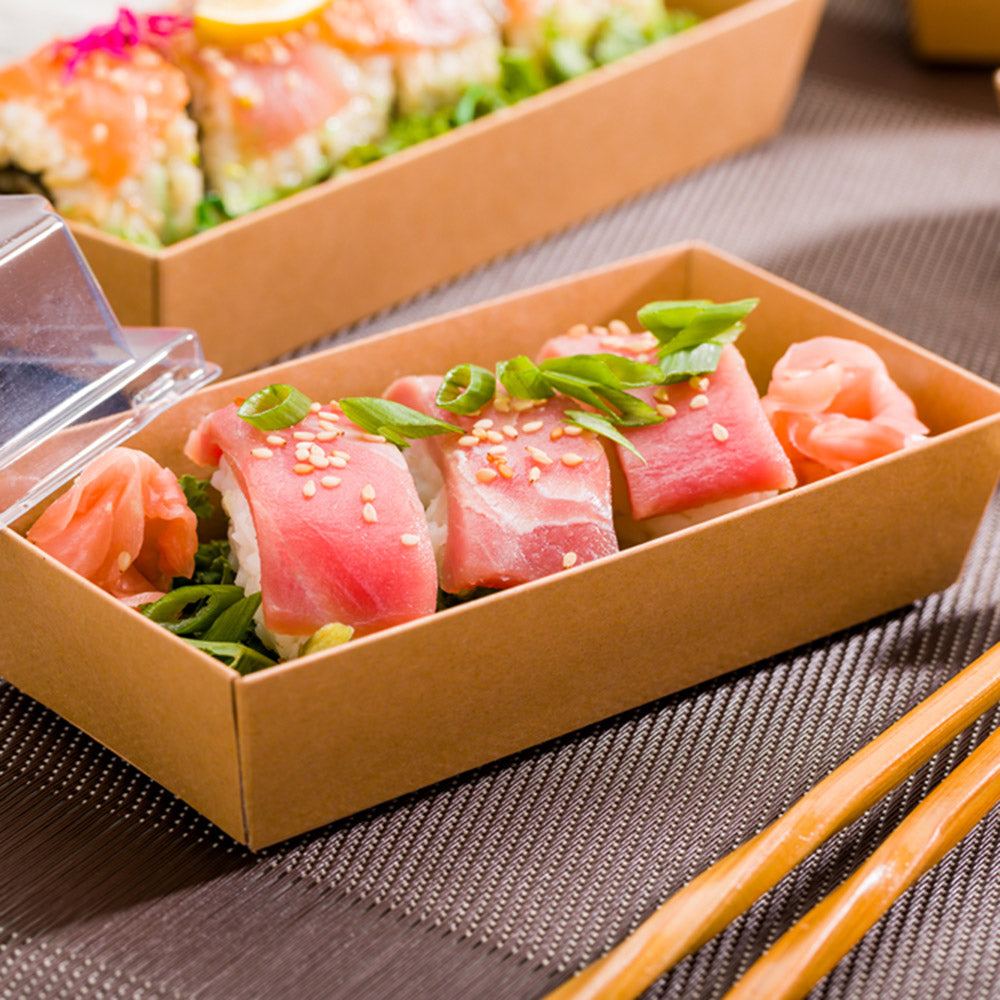 Sturdy paper construction holds the weight of multiple sushi rolls or other meals without bending or breaking. Keep meals securely contained!