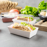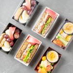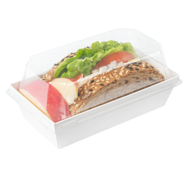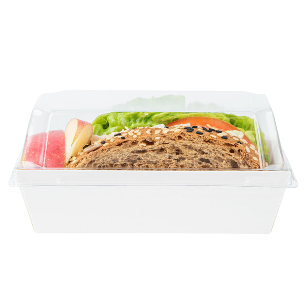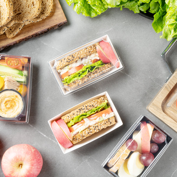 To take meals with you, our containers can be covered with our matching lids to securely seal your food. By combining containers with our crystal clear lids, guests will be able to take a peek inside each container.