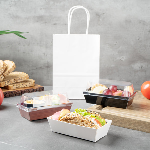 Choose from our kraft, black, white, or wood grain take out containers to complement the colors of food and match the theme of your event. Find the color that suits your needs!