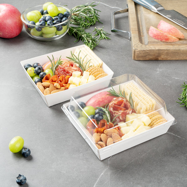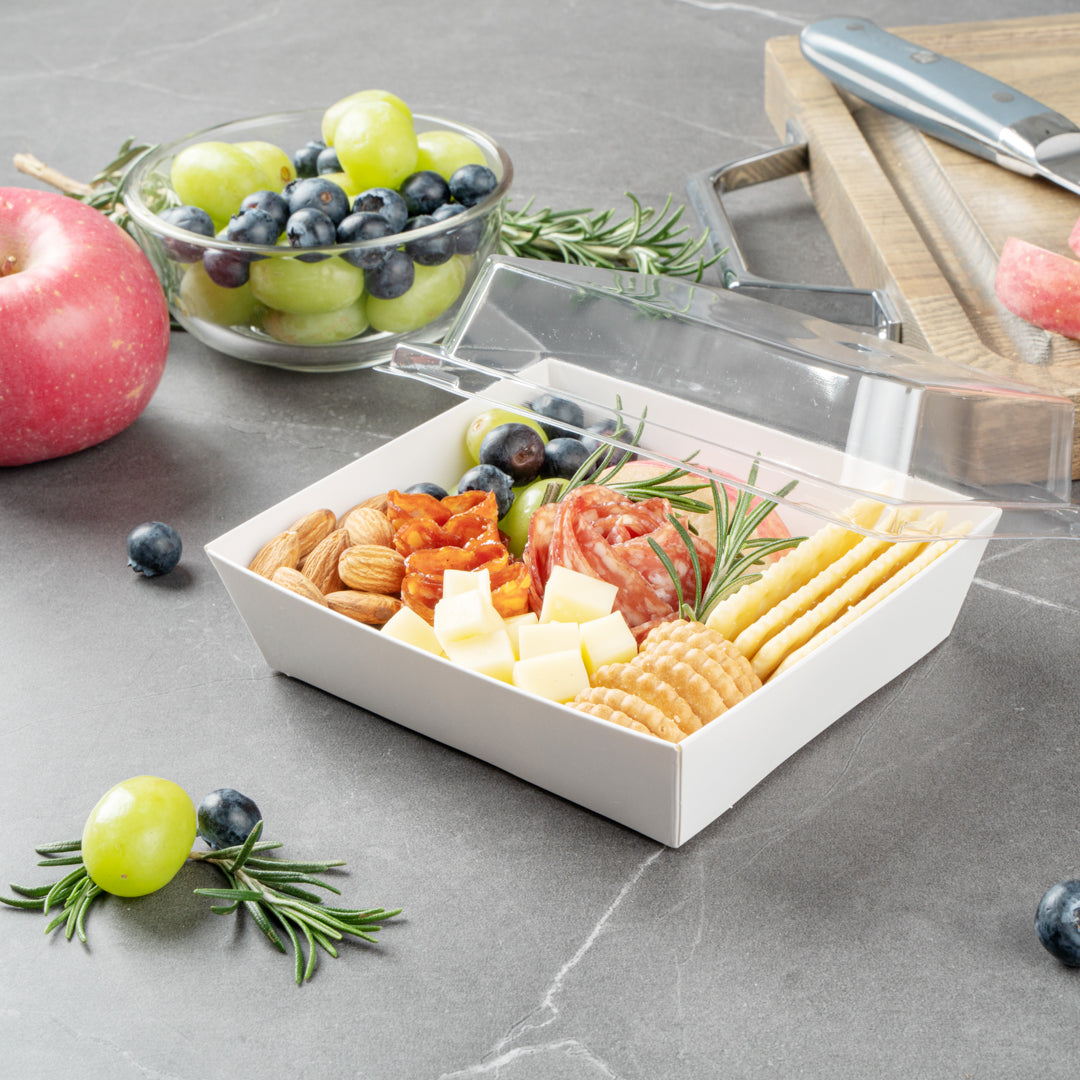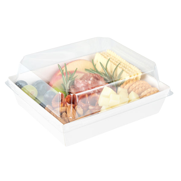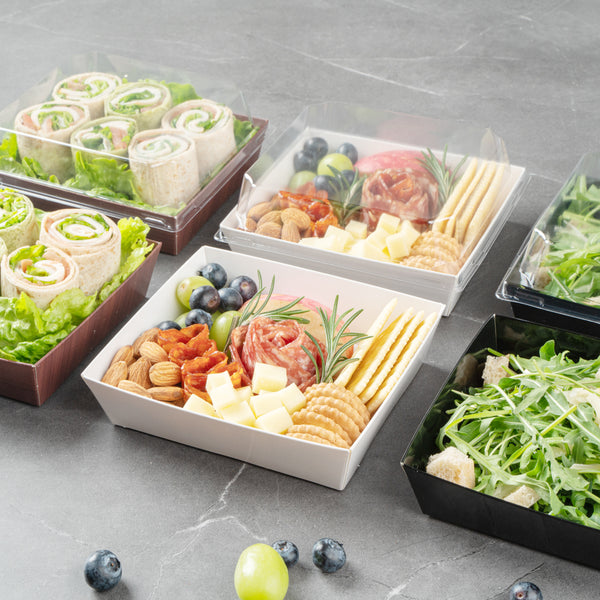 To take meals with you, our containers can be covered with our matching lids to securely seal your food. By combining containers with our crystal clear lids, guests will be able to take a peek inside each container.