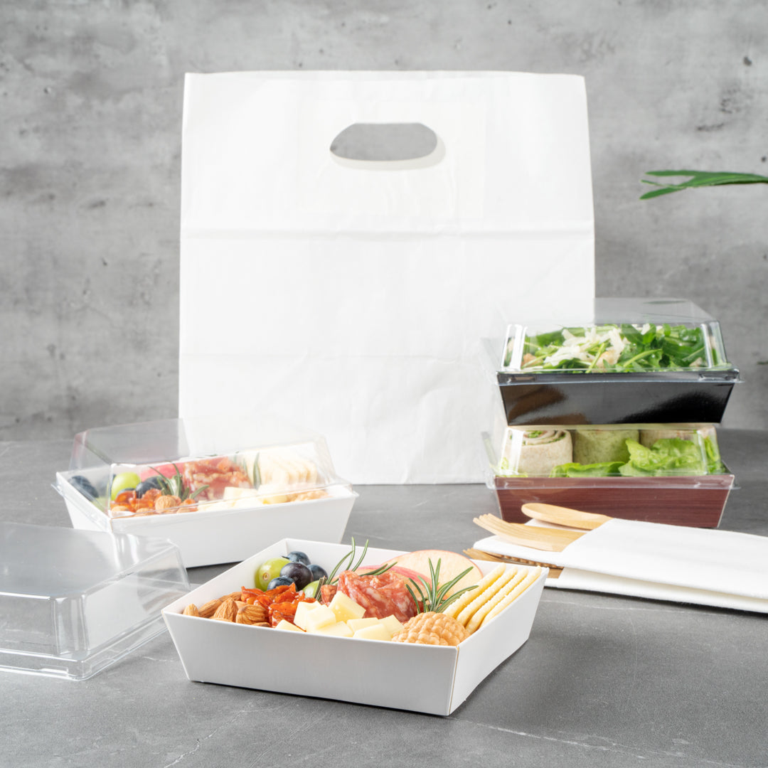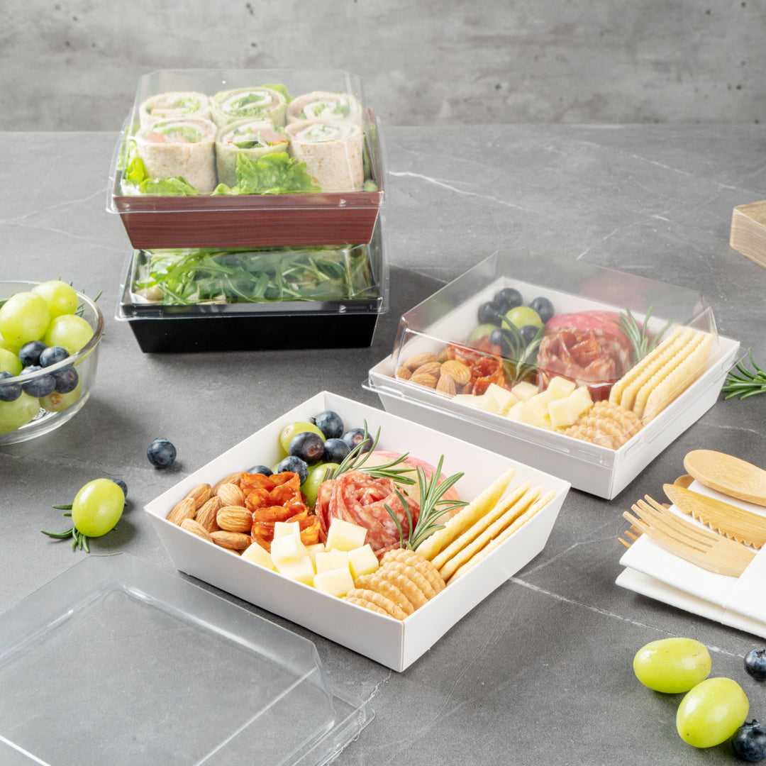 Choose from our kraft, black, white, or wood grain take out containers to complement the colors of food and match the theme of your event. Find the color that suits your needs!