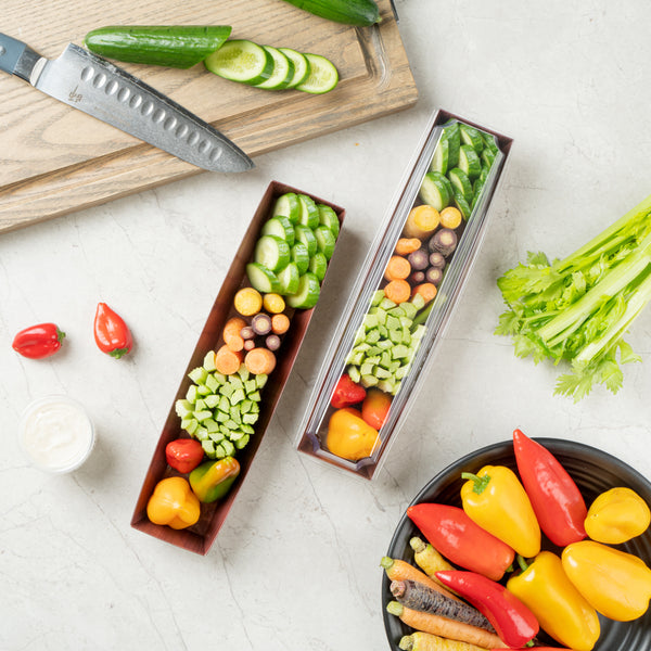 To take meals with you, our containers can be covered with our matching lids to securely seal your food. By combining containers with our crystal clear lids, guests will be able to take a peek inside each container.