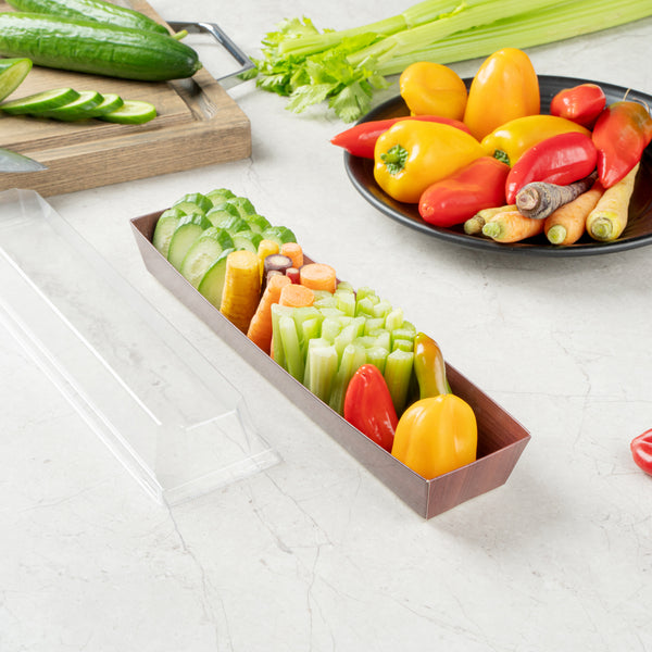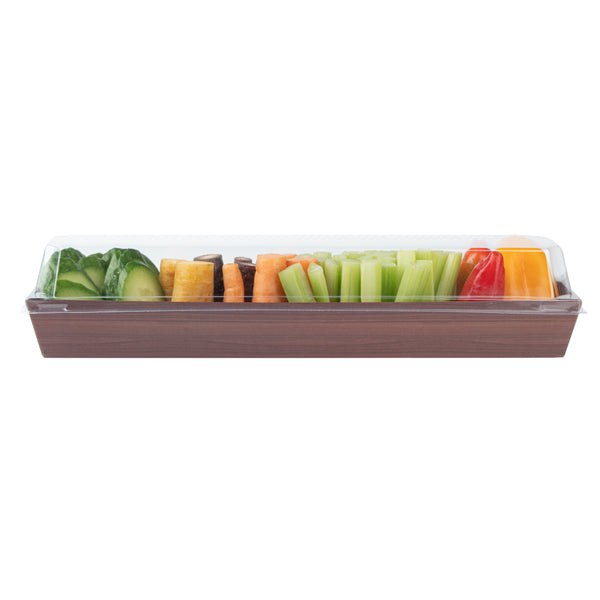 - Wood grain finish effortlessly enhances your prepackaged meal presentations