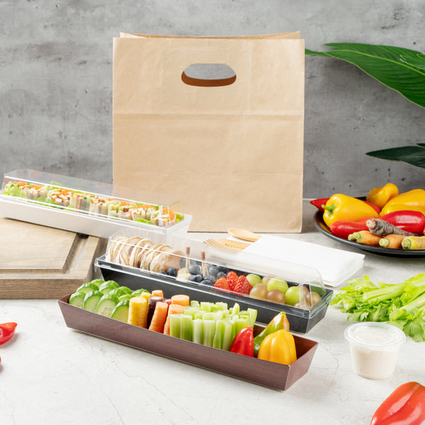 Choose from our kraft, black, white, or wood grain take out containers to complement the colors of food and match the theme of your event. Find the color that suits your needs!
